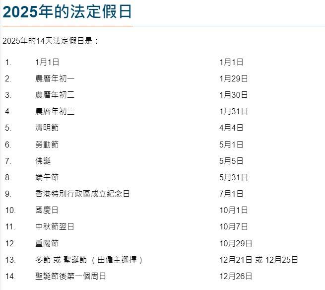 2025年公眾假期2025年公眾假期2025年公眾假期