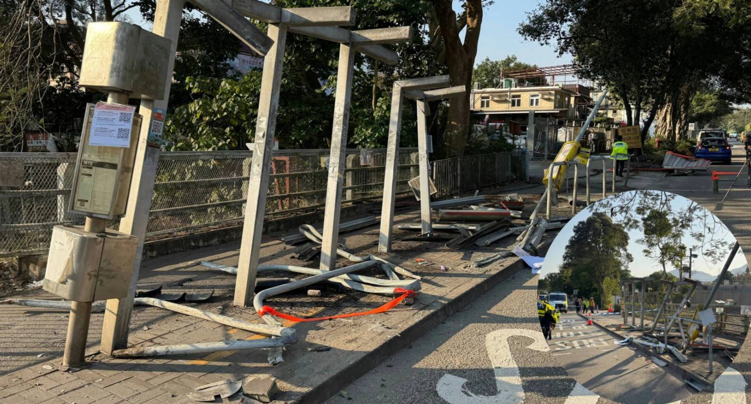 警方表示,吊臂車司機沒有受傷,但吊臂車損毀嚴重,擋風玻璃碎裂,左前輪爆胎,現場巴士站的上蓋、路牌和欄杆等損毀。經調查顯示,吊臂車於2.8公里外的簡頭村出車時已經失事撞毀燈柱等。