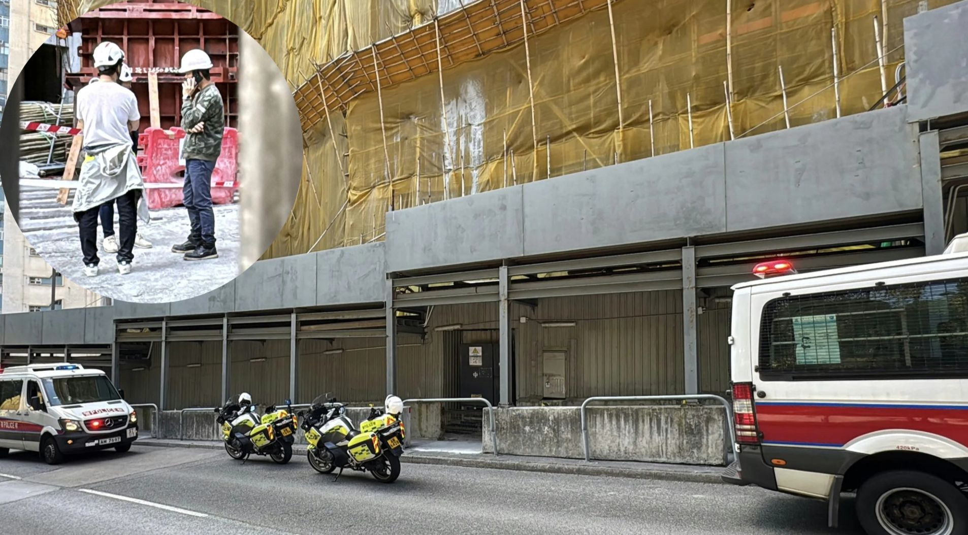 今日下午1時許,火炭松頭下路及拔子窩街一個地盤,一名61歲姓李男工人懷疑拆卸鐵架時,遭工字鐵擊中,從大約4米高位置墮下,男工人陷入昏迷,救援人員接報到場,證實該名工人當場不治。