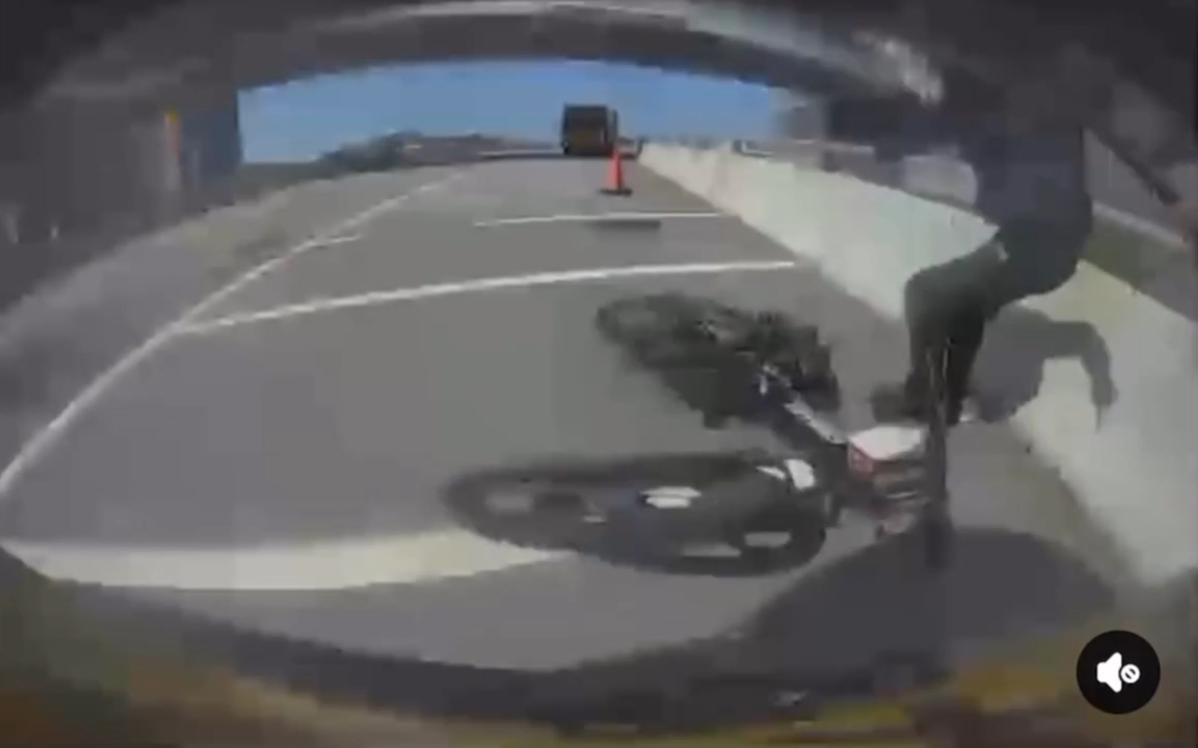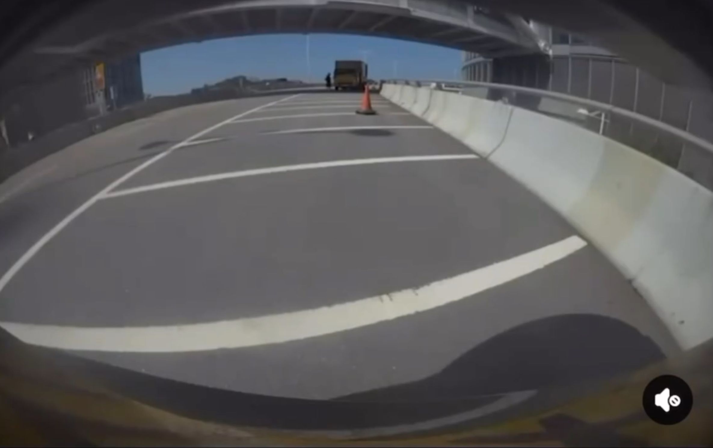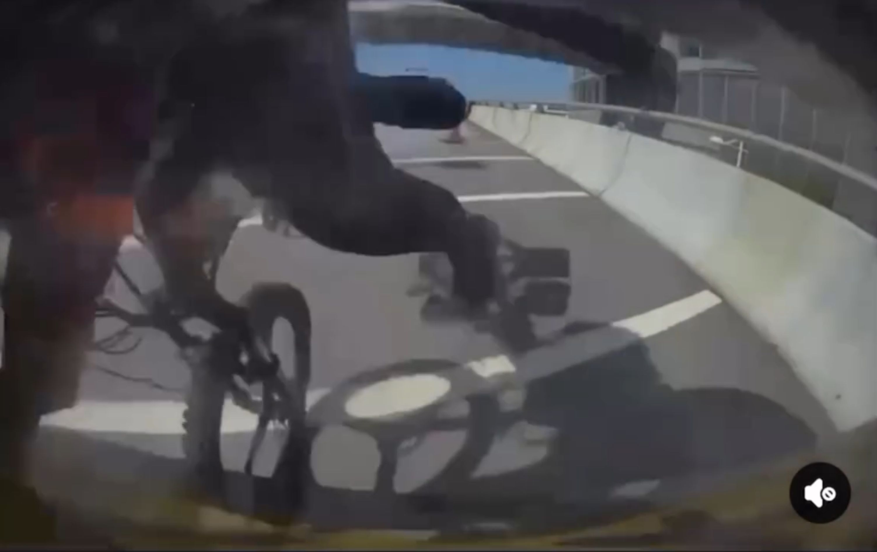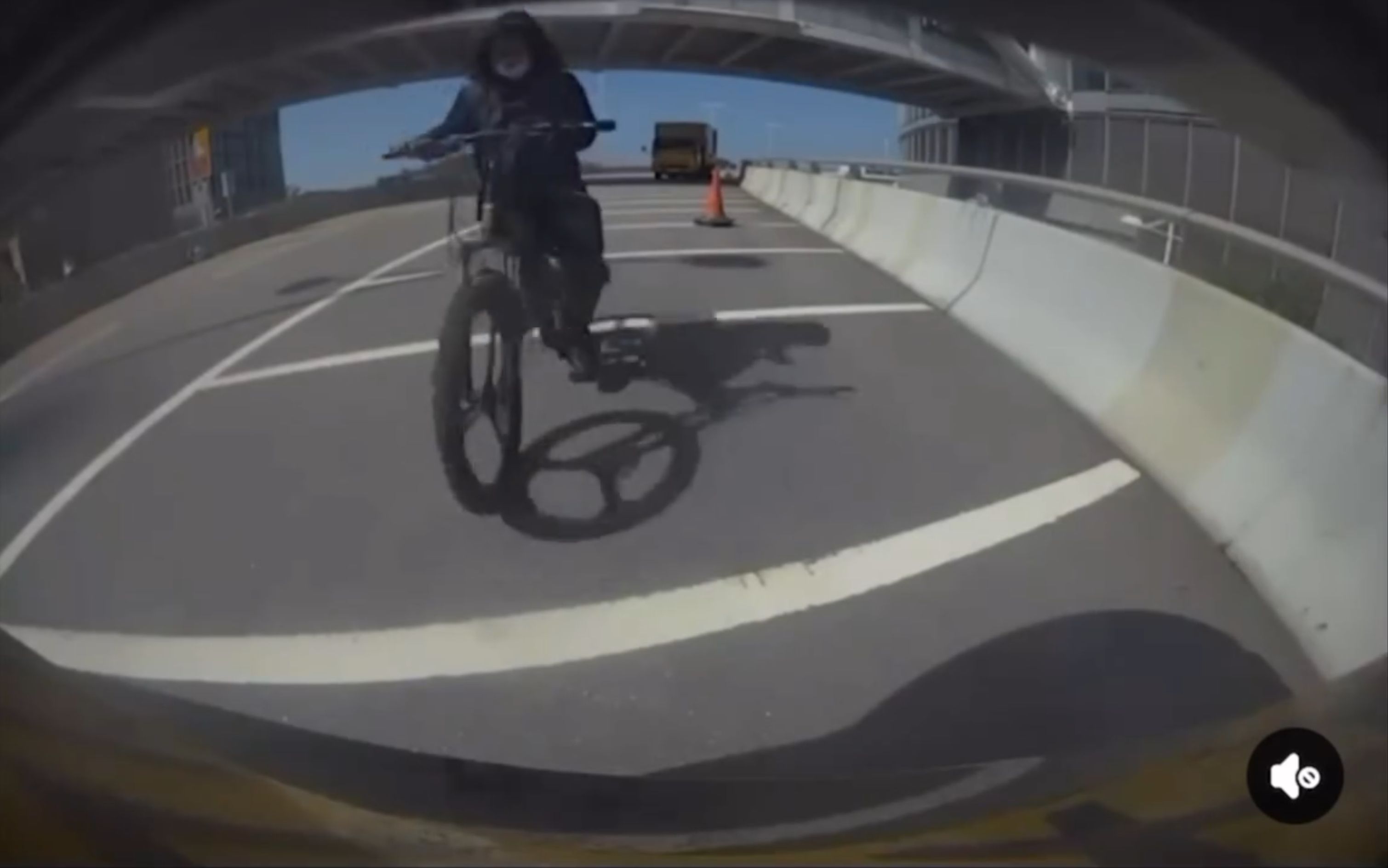 從該車CAM視頻中可見,一名非華裔男子騎著單車從香港一條行車天橋高速落斜,單車騎手懷疑未有看到前方一輛停泊在天橋影線的私家車,最終直撼該輛私家車後人仰車翻,騎手到了行車天橋邊始停下,驚險萬分,撞後該名單車騎手則狀甚痛苦。