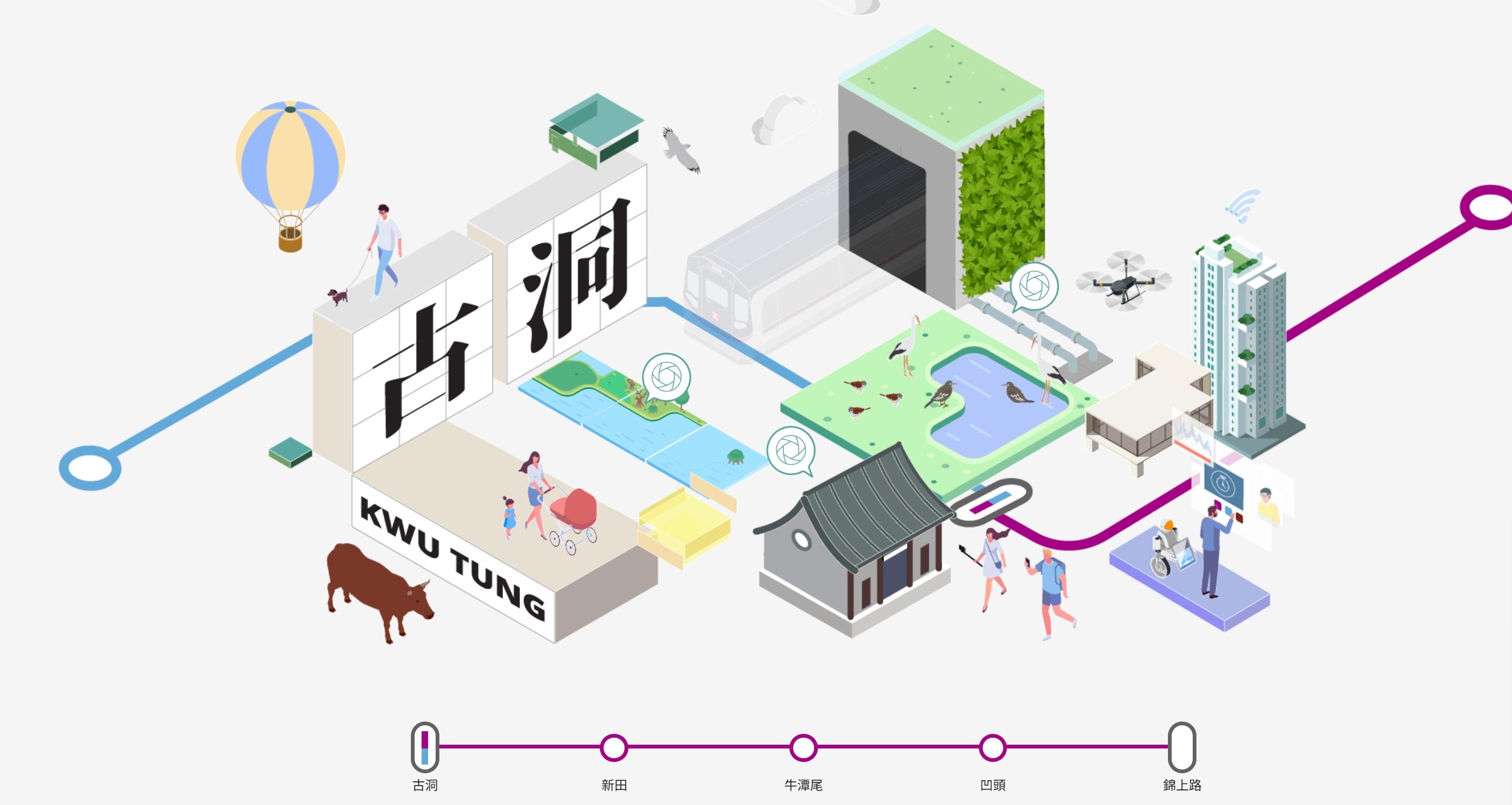 根據港鐵網頁指出:「因應北環綫沿綫的發展步伐,我們會先在現有東鐵綫落馬洲支綫上開始興建古洞站,然後陸續開展主綫包括北環綫古洞站的工程。兩綫的古洞站將相鄰相連,擬建的古洞站位於未來古洞北新發展區的市中心,毗連新發展區內的住宅、零售、休閒及社會服務與社區設施用地。除了方便現有社區及新發展區的居民出行,擬建的古洞站亦有助釋放周邊地區的發展潛力,為社區注入新活力。東鐵綫古洞站的詳細設計經已完成,而主體工程亦已於2023年展開,目標於2027年完成整個項目工程。待北環綫古洞站隨後落成,乘客將可在古洞站輕鬆轉乘東鐵綫及北環綫。」