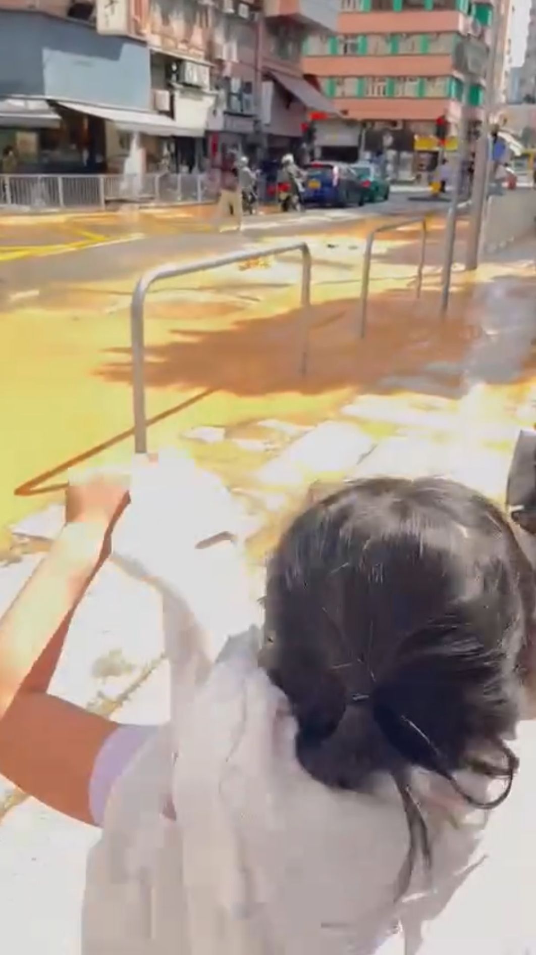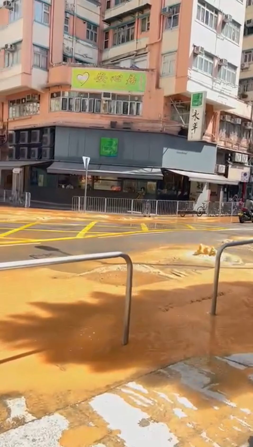 途人紛紛繞道而行或涉水而過,司機駕駛車輛經過,亦小心翼翼減速駛離該路段,警員在場指揮交通,並召水務署人員到場閂水掣及進行搶修。