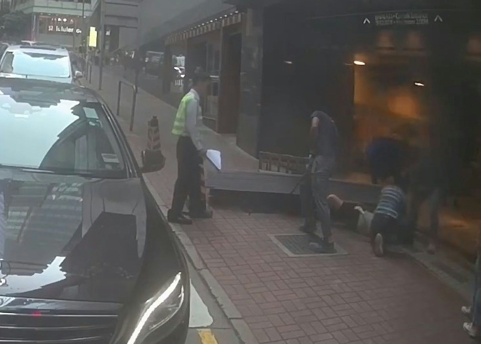 中環搬運工昨天 (4月7日) 在搬運一塊巨型石膏板途中,突然遭到該巨型石膏板壓住半身,工友隨即以「槓桿原理」,利用鐵棍撬起保其命,驚險過程被傐泊在附近的車輛車CAM拍下。