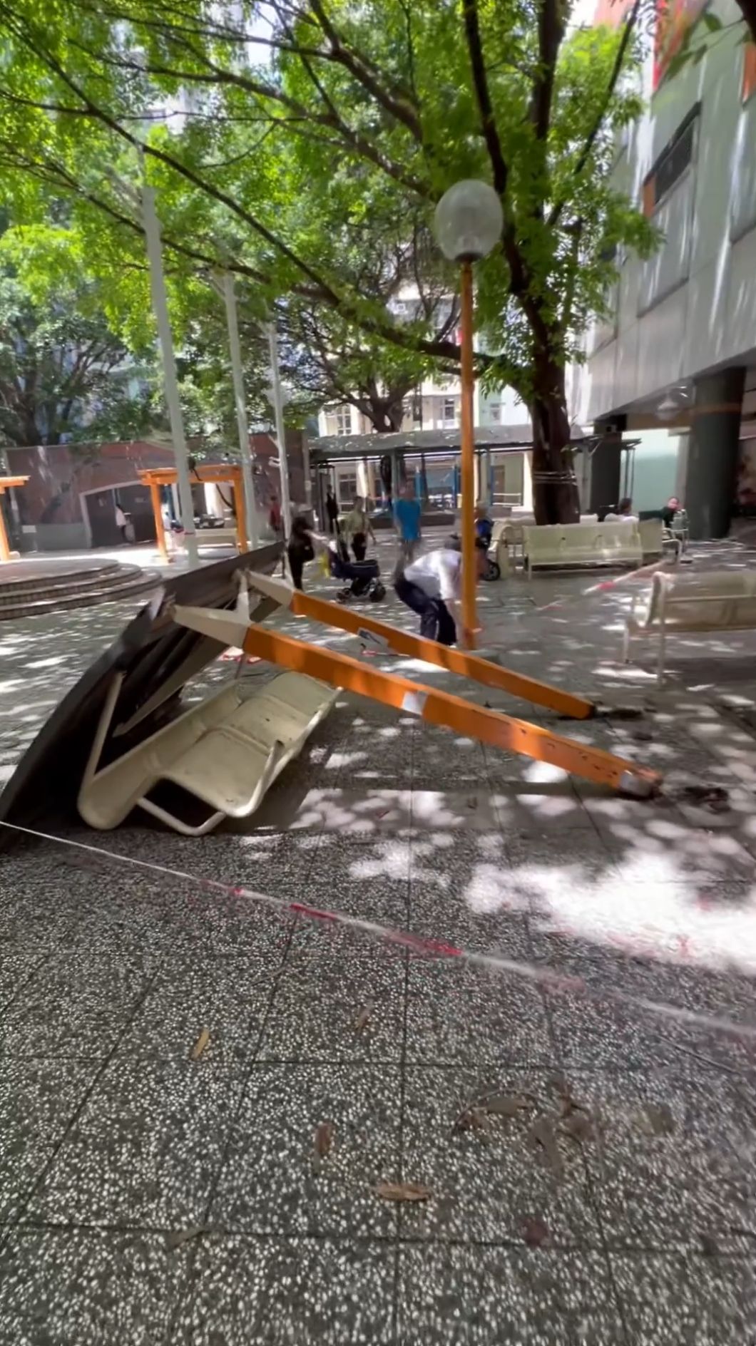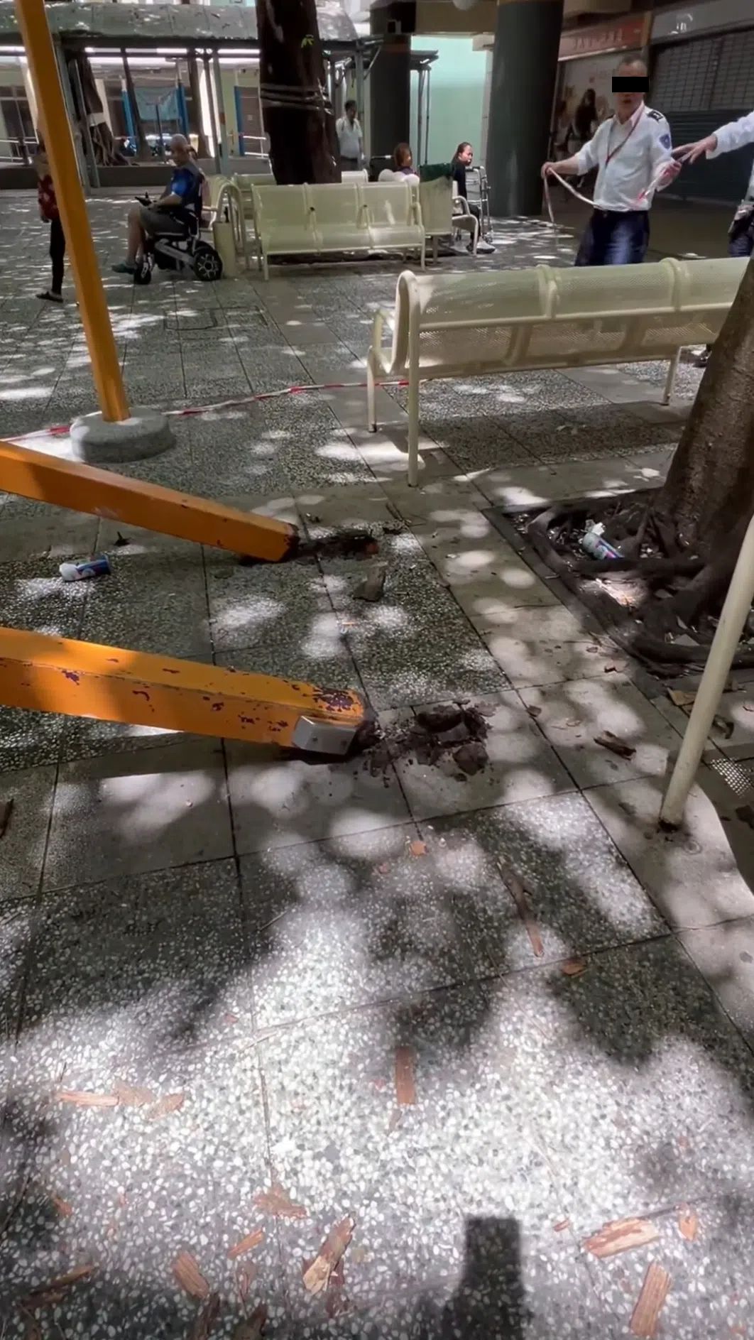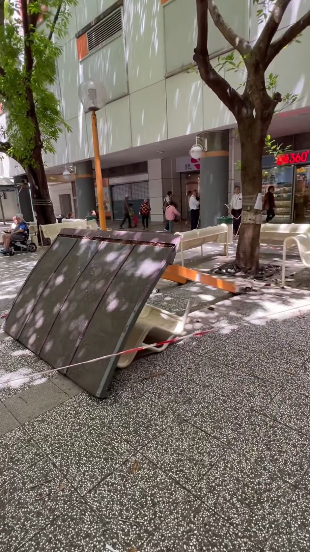 該手機視頻顯示,事發地點相信是東涌逸東邨街市對出,有位於屋邨內公眾地方的涼亭椅,其鐵腳懷疑因銹蝕及日久失修,突然折斷倒塌,嚇煞街坊。事後有屋邨管理員把倒塌現場以封條圍封,旁白人士則驚嘆指這屬於「豆腐渣工程」。
