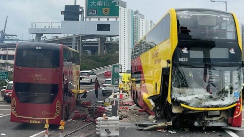 周四(5月1日)下午12時許,一輛城巴沿西九龍公路往機場方向行駛,當駛至青沙公路交界近海麗邨分叉路口時,突然失事撞向風琴式防撞欄及水馬。