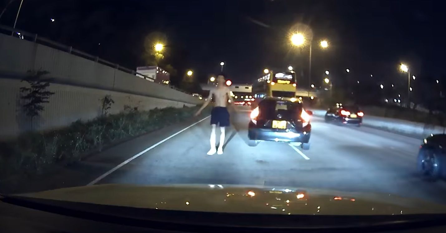 吐露港公路驚現一宗赤膊男狂奔事件!周六(5月3日)晚上9時11分,吐露港公路上演一場驚險場面。一名赤膊男子在公路上攔截一輛私家車,並試圖進入車內。擾亂一輪後,最終被警制服送院。