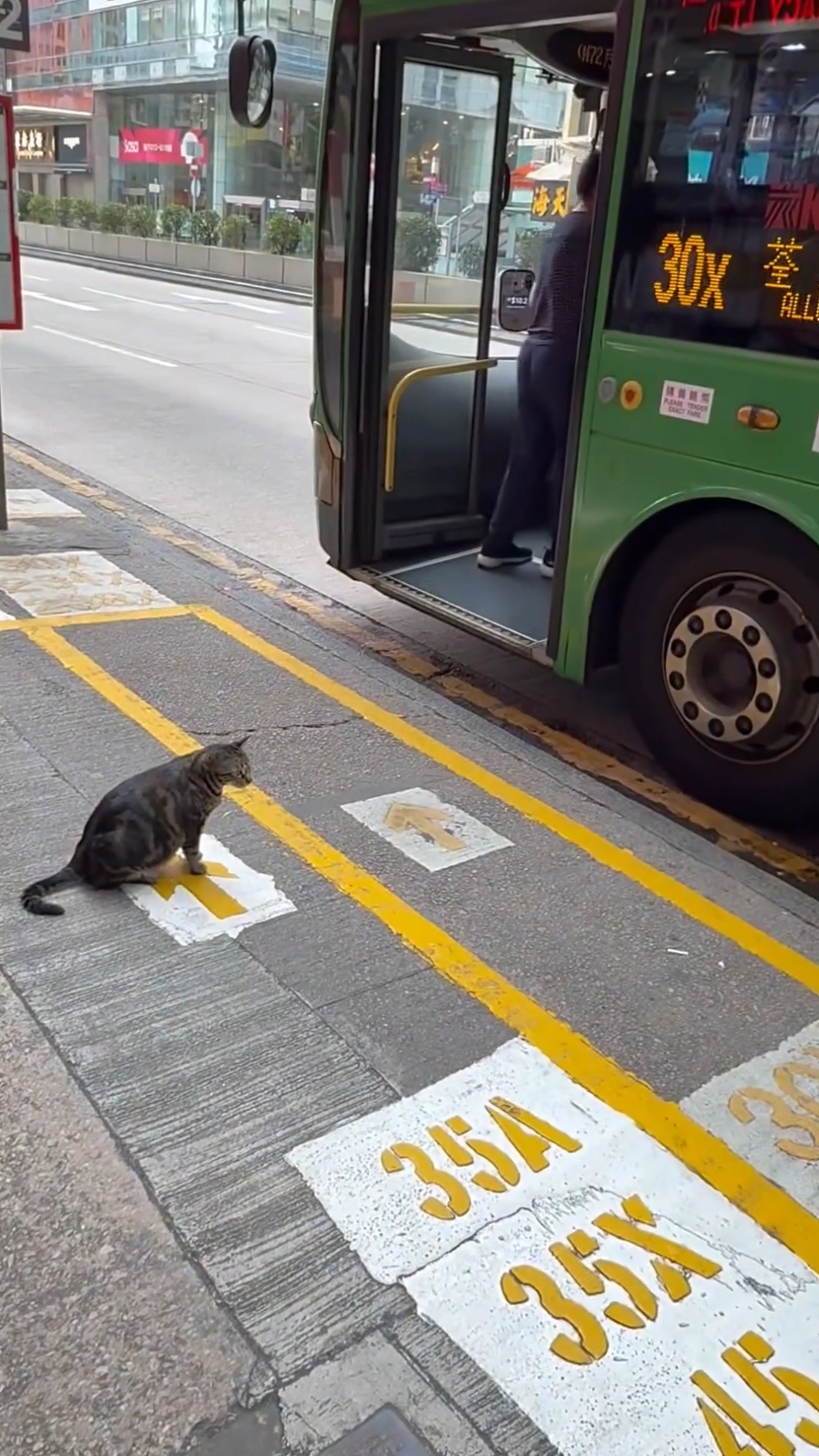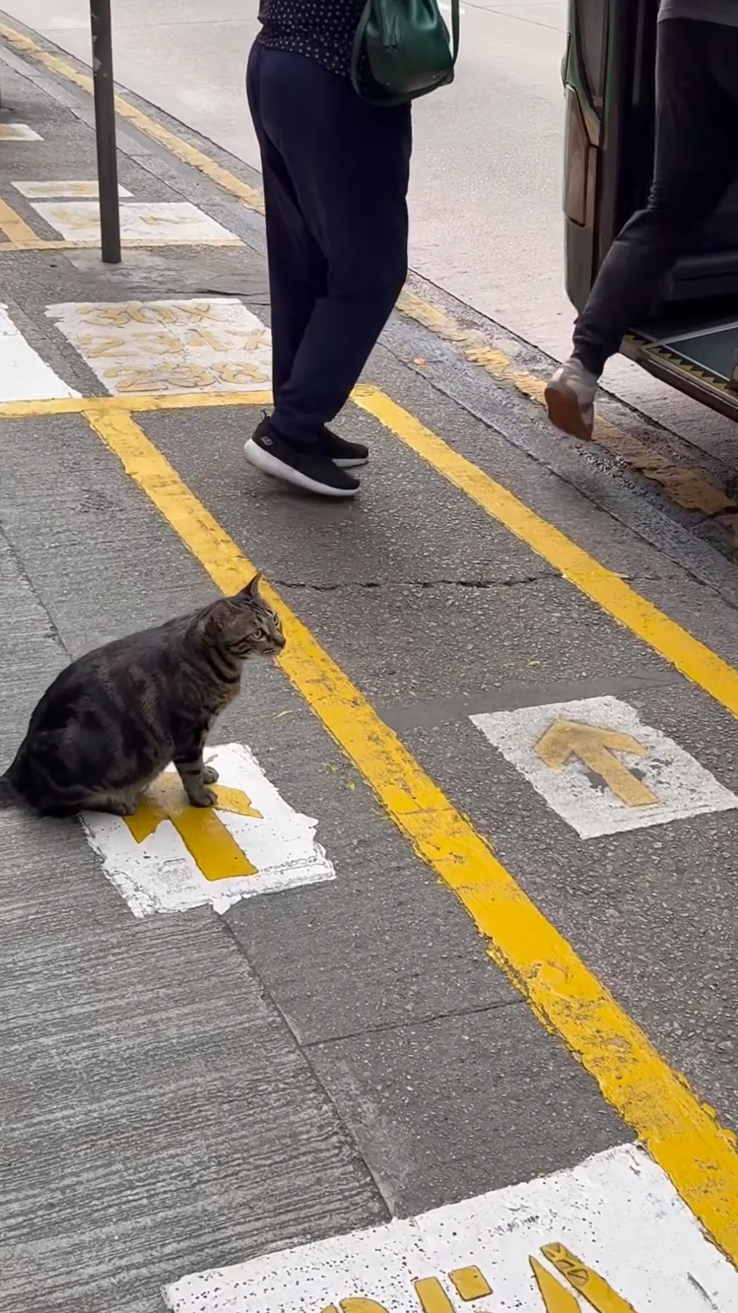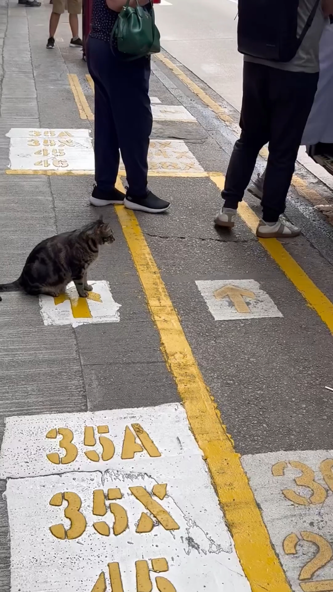 網上FB群組日前流傳一則帖子並且附上手機視頻,視頻中可見一隻超萌可愛的貓咪,在旺角彌敦道一個巴士站彷彿在排隊候車 (35、35X、45、46號線),或者如站長般監察巴士上落客情況,十分可愛,據報該貓咪是附近一間藥房所養。