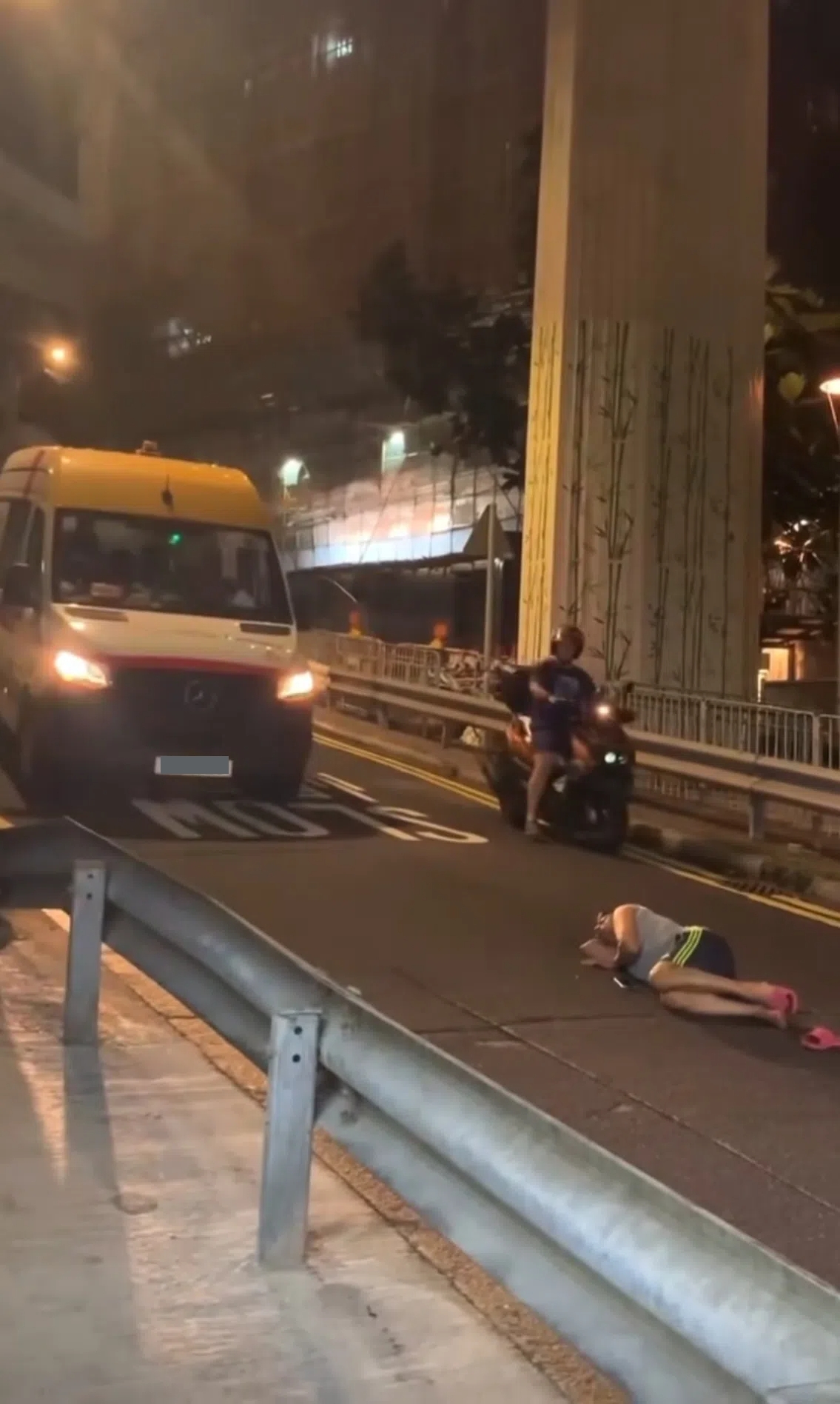 視頻中可見在夜黑的馬路中心,一名身穿粉紅色拖鞋、白色背心黑色間條短褲的阿叔,懷疑因醉酒就地大覺瞓,不但十分危險,而且令到司機的去路被擋,需要亮起死火燈警告來車。