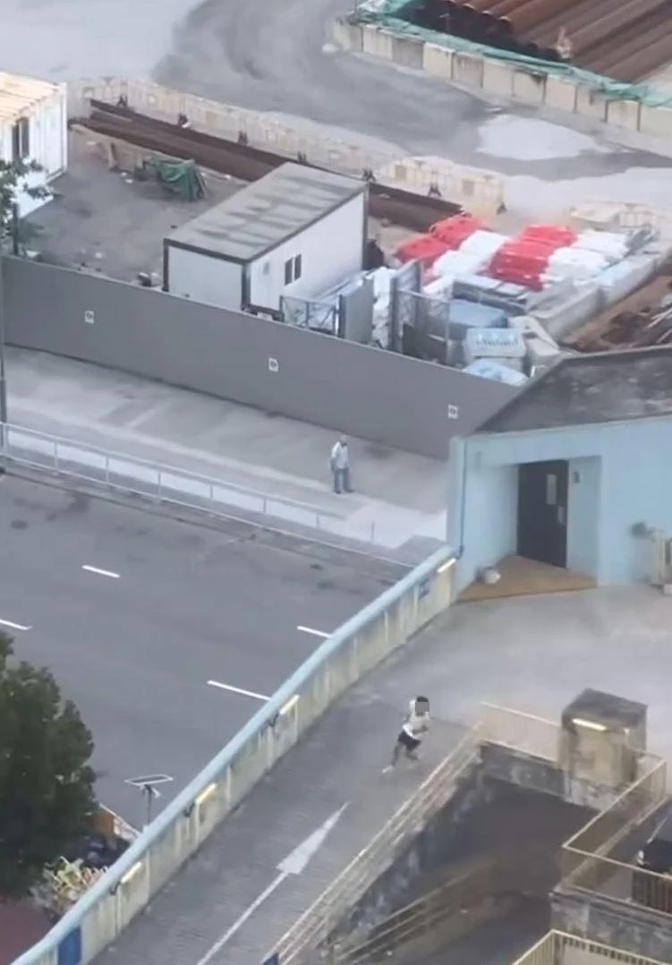 其後有私家車駛近,女學生立即站起身來,男學生看似大驚隨即取起書包,立即狂奔到下一層,任由該女學生獨自留在事發現場。