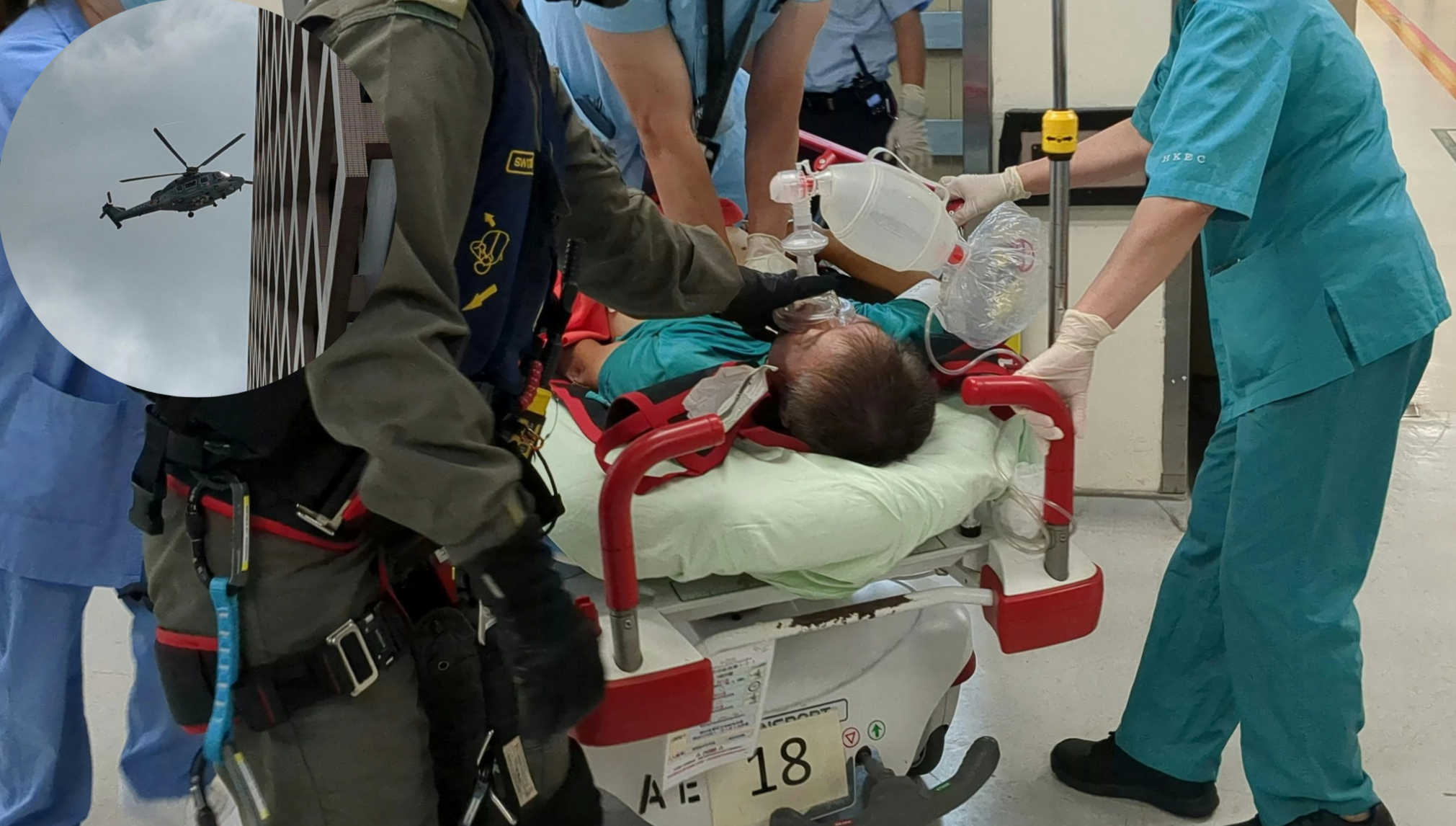 今日早上9時許,有行山人士報案,指在慈雲山衛奕信徑第5段發現一名年約60歲的男子暈倒地上,救援人員趕到現場後,在十二笏村附近找到涉事的69歲姓何男事主,他昏迷不醒,隨即通知政府飛行服務隊派直升機到場,把事主送到東區醫院搶救。