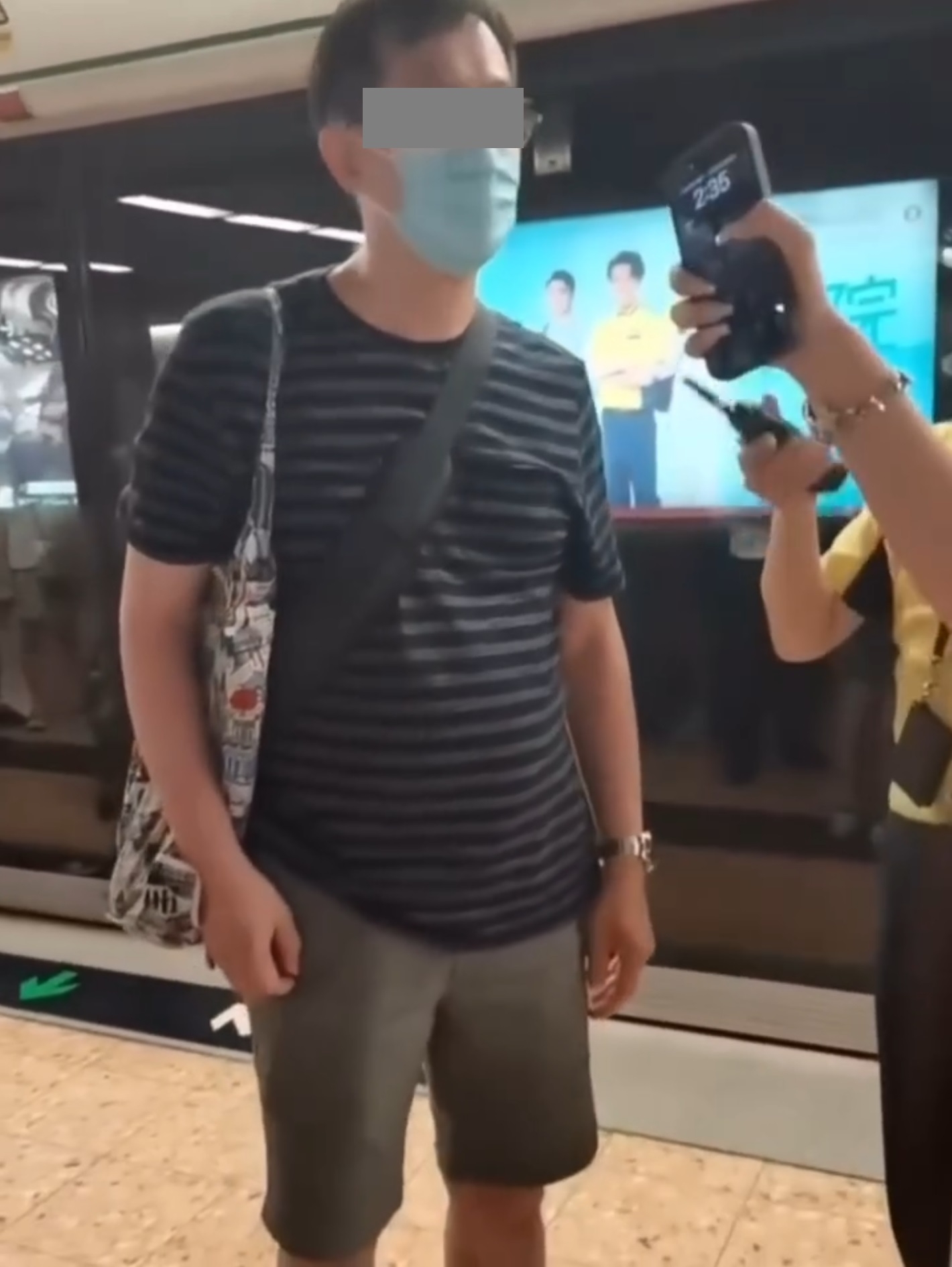 該視頻中可見一名戴眼鏡身穿深色間條短袖T恤及軍綠色短褲,以及帶上環保袋的阿叔,於港鐵月台上被旁白的女士不斷指駡,期間更表示「我俾機會你,邊個俾機會我」、「全世界睇住佢DELETE相」,現場有一名港鐵男職員正在欄截該名想離開的涉事阿叔。