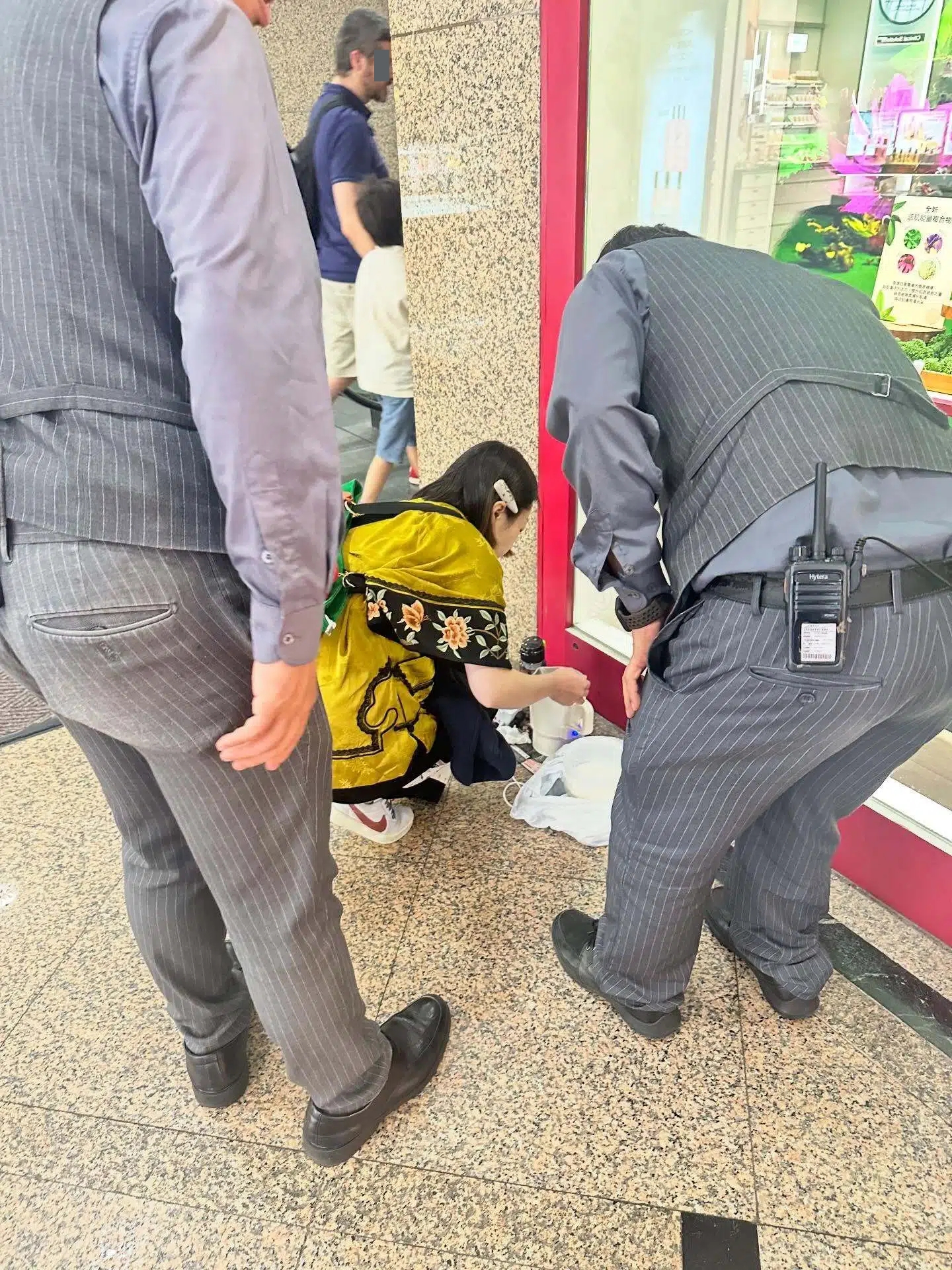 根據帖主指出,當時一名女子在銅鑼灣時代廣場外懷疑偷電煮西米露,被2名商場保安驅趕。