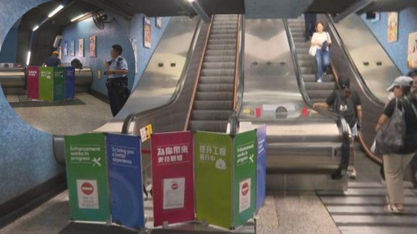港鐵表示,一名男乘客在扶手電梯上身體不適,向後跌倒,撞向其母親及另外兩位女乘客,期間有乘客按停電梯及報警。