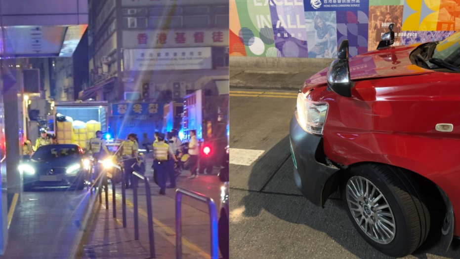 的士車頭損毀,60歲曾姓的士男司機報稱心口痛,送往伊利沙伯醫院治理。