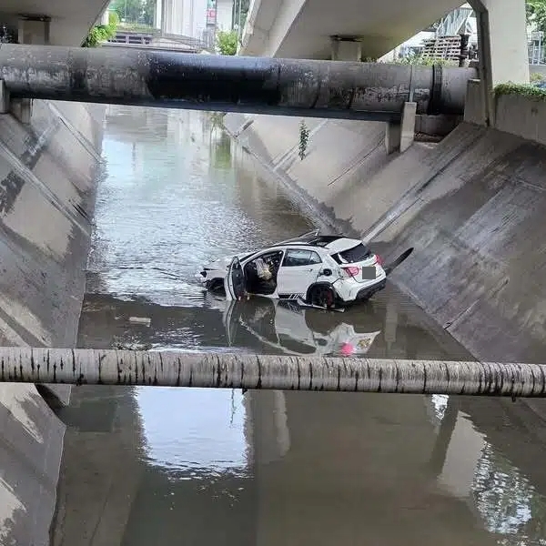 今日(7月12日)早上接近6時半,警方接報一輛私家車在元朗安樂路失事墮明渠,警員到場調查,在元朗安樂路近水車館里對開發現一輛平治跌在兩米下明渠,而水深約半呎。