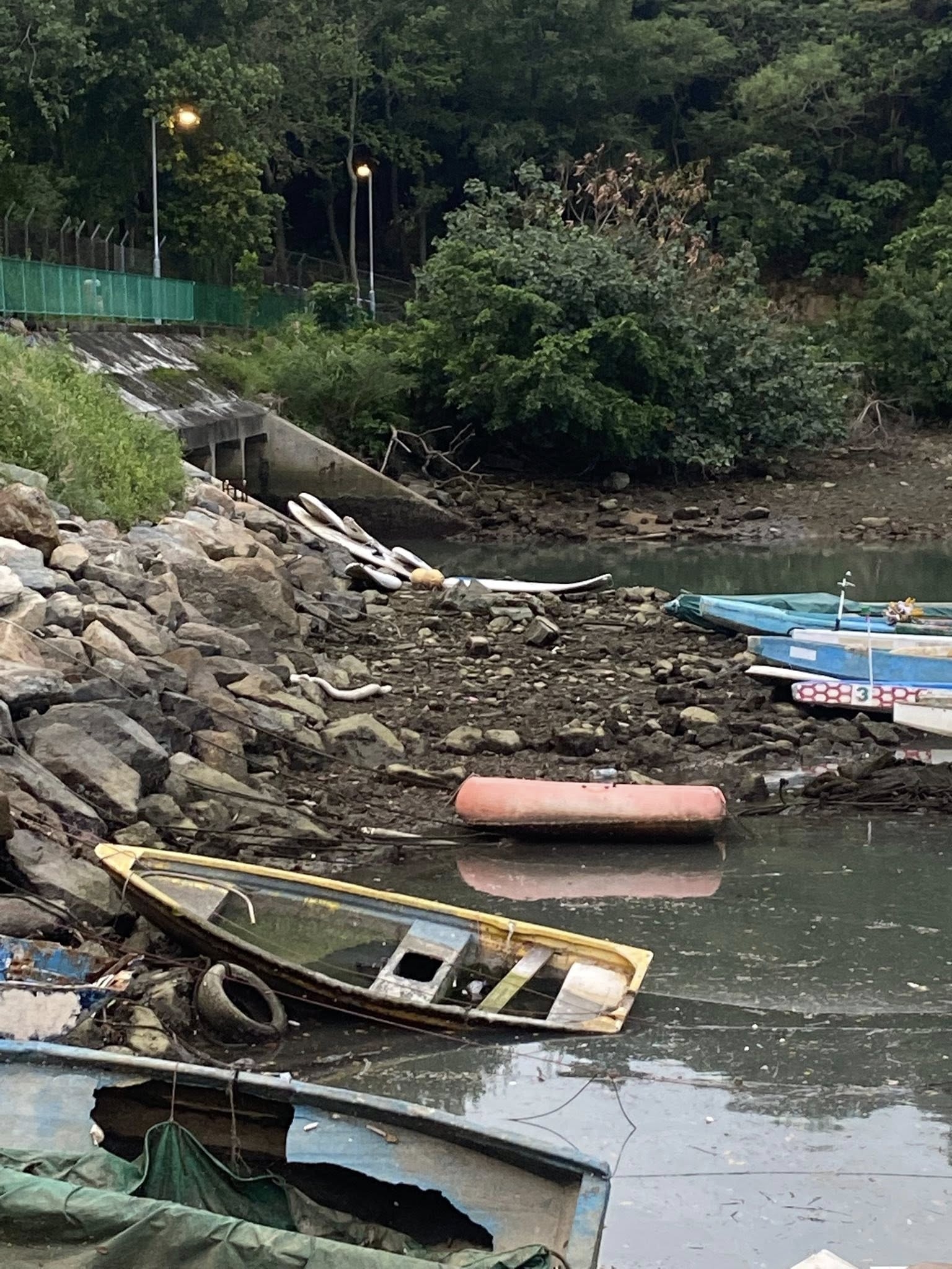 網上FB群組今天 (7月12日) 流傳一則帖子並且附上圖片,帖子題為「剛剛散步,見到清水灣半島碼頭有大蟒蛇屍體」。