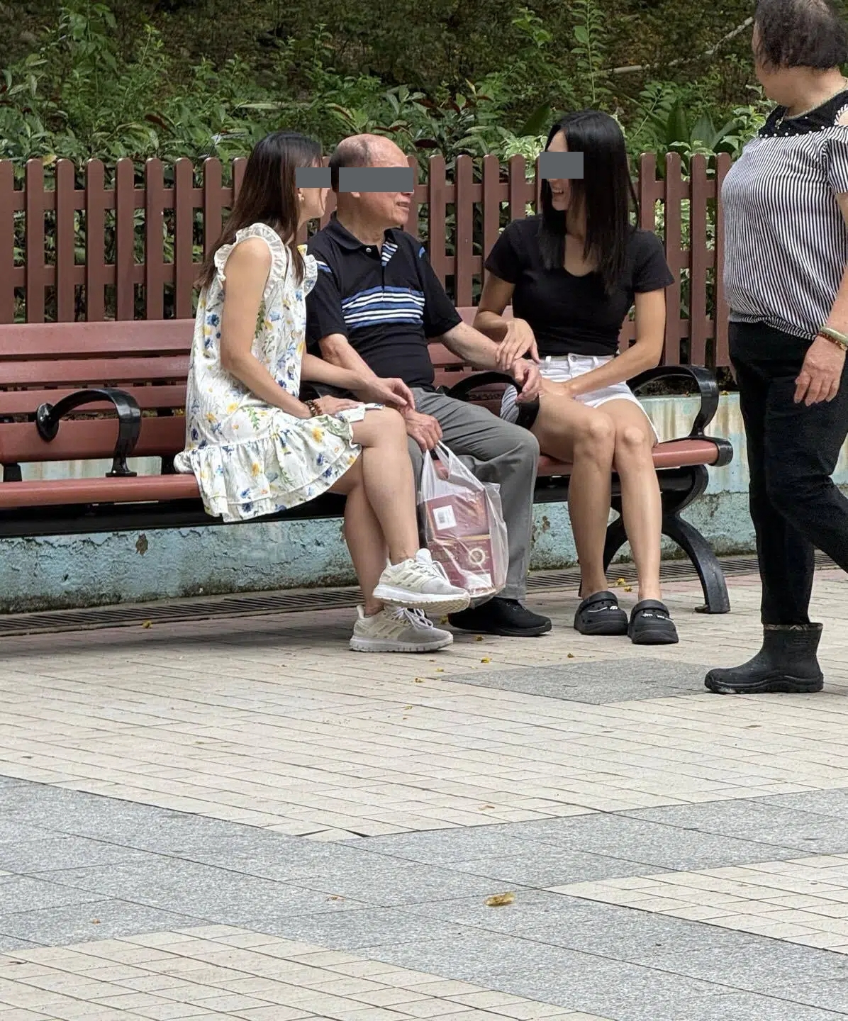網上社交平台昨天 (7月15日) 流傳一則帖子並且附上圖片,帖子指出「呀叔超越99%嘅香港男人,今日中午以為係公園直擊Call G「交易」,連呀姐都忍唔住望多一眼,點知原來兩個都係呀叔嘅女朋友。。。突然覺得每個男人都真係要跟呀叔學下點做現代韋小寶,呀叔幾時開班教下細佬我。。。」。