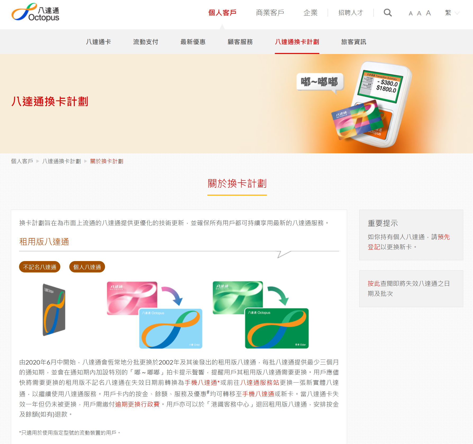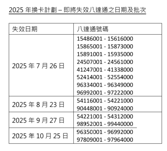 此外,市民可透過八達通公司網頁,查詢你的八達通是否需要更換。![]()
