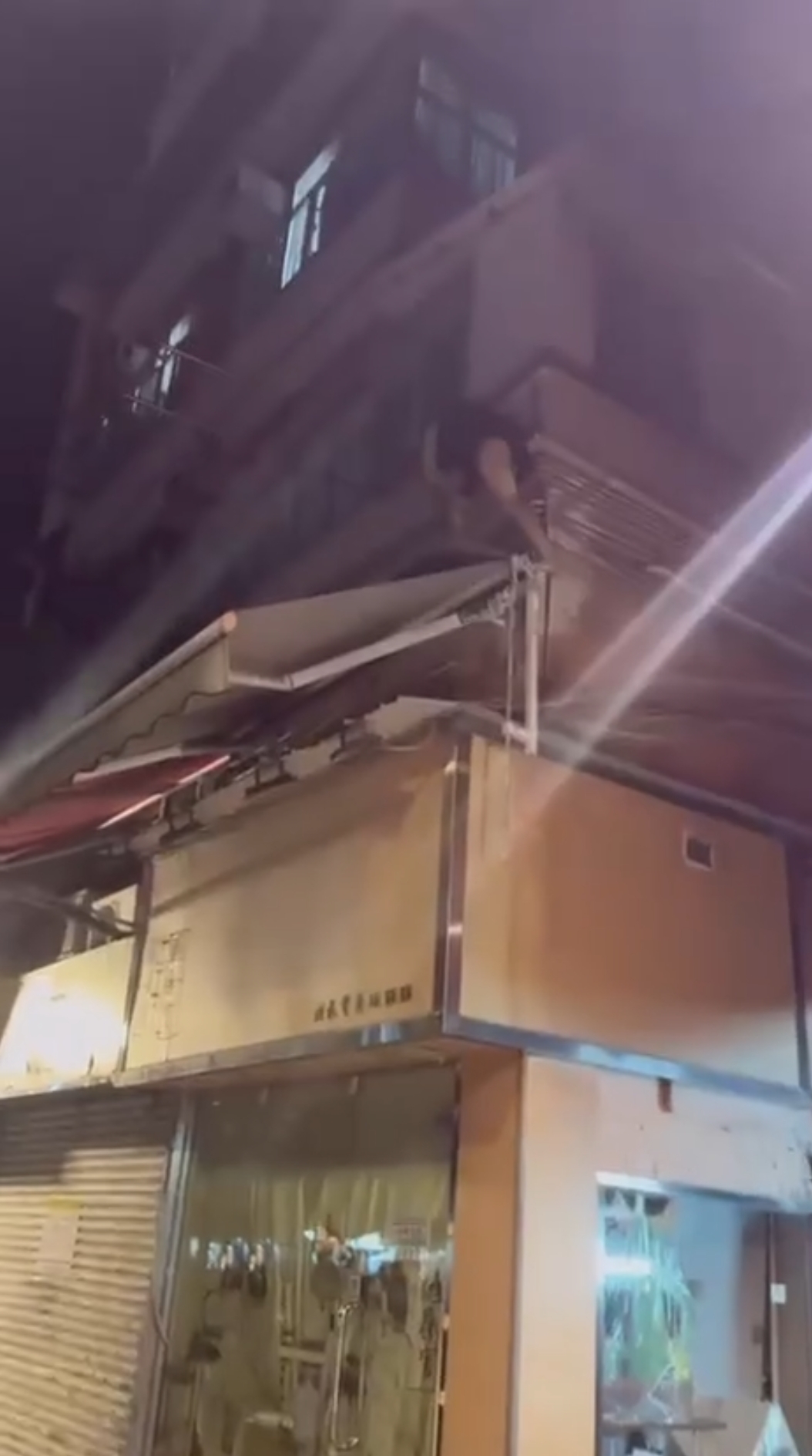 事發地點相信是元朗區,視頻中可見晚上一名僅穿內衣褲的妙齡女子,懷疑於警方掃黃行動中斷正,她驚險爬窗逃出單位外於簷篷游走試圖逃走,地面有多名便衣警員圍捕並且以電筒照射,片段就此結束。
