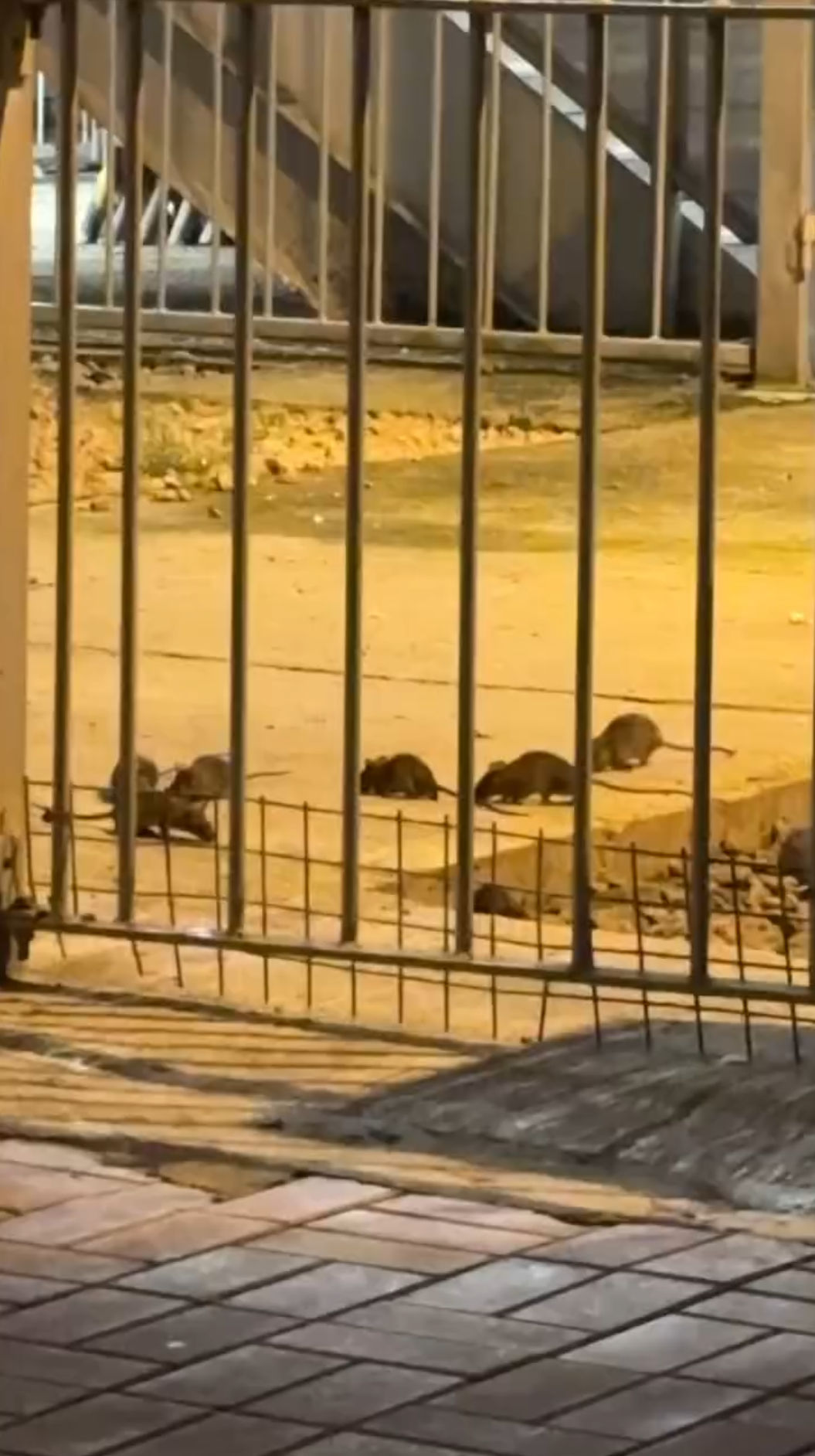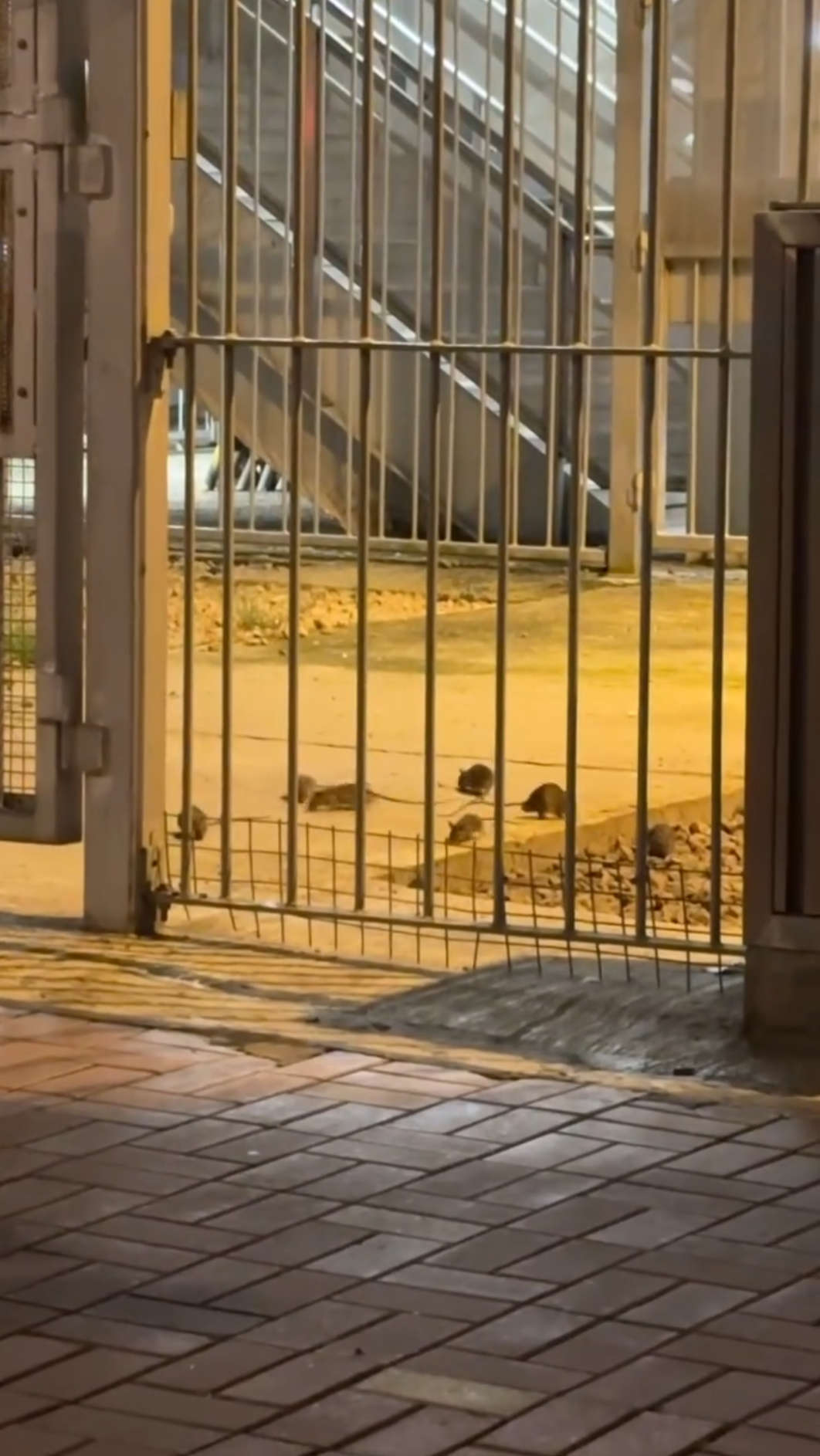事發地點相信是一個港鐵站一帶,晚上一群最少8隻老鼠出没疑似覓食,期間女拍片者更驚呼「Oh My God」。