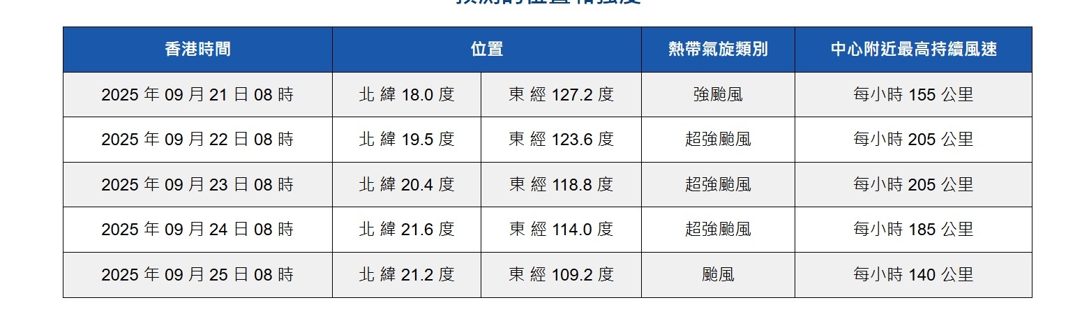 即是說,其中心附近最高持續風速達每小時185公里,比昨晚(19日)向南推約30公里,但仍會比較當年超強颱風「山竹」最近香港時100公里,再近20公里。