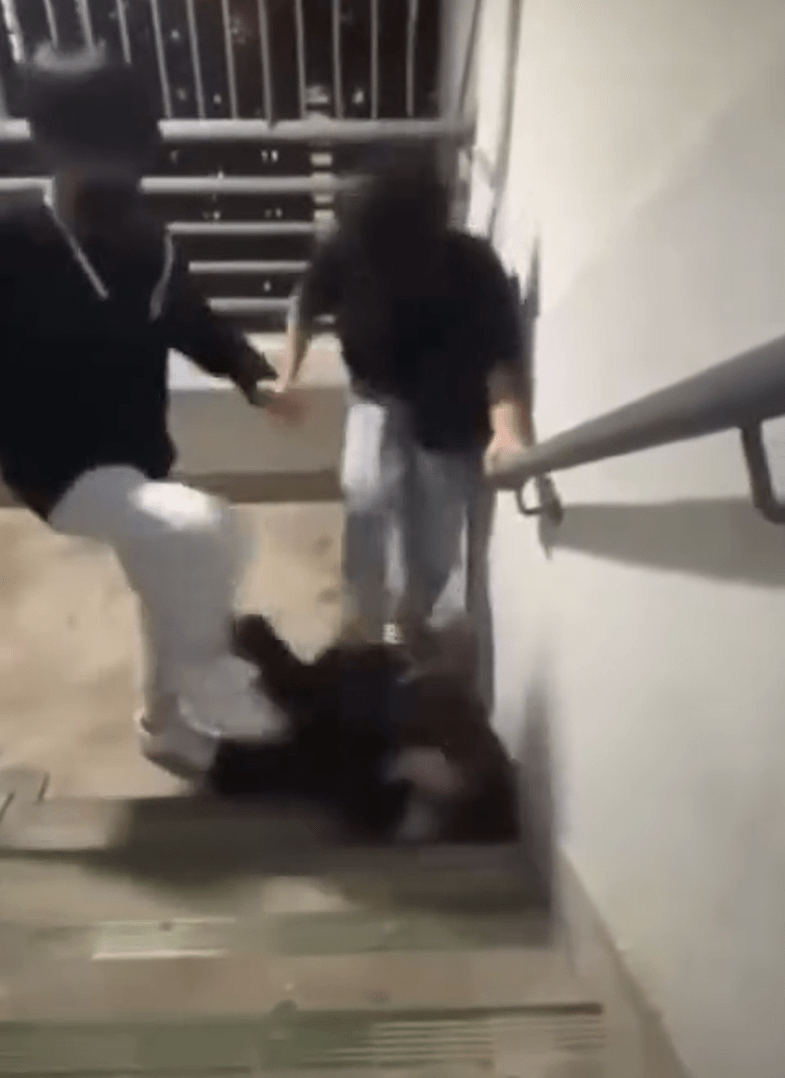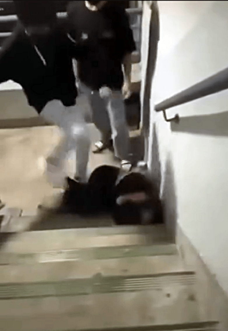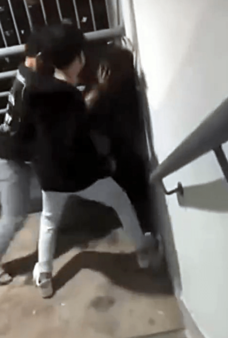 網上最新流傳一段暴力狂歐的欺凌手機片段,2名少年童黨晚上在屯門良景邨後樓梯狂毆一名12歲長髮少女,兜鎚打面、踩頭、膝撞等30秒車輪式拳打腳踢,打到「嘭嘭聲」。