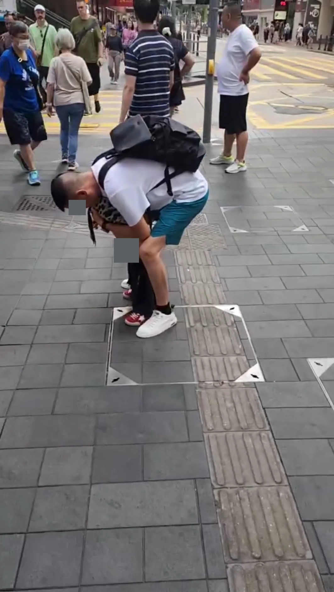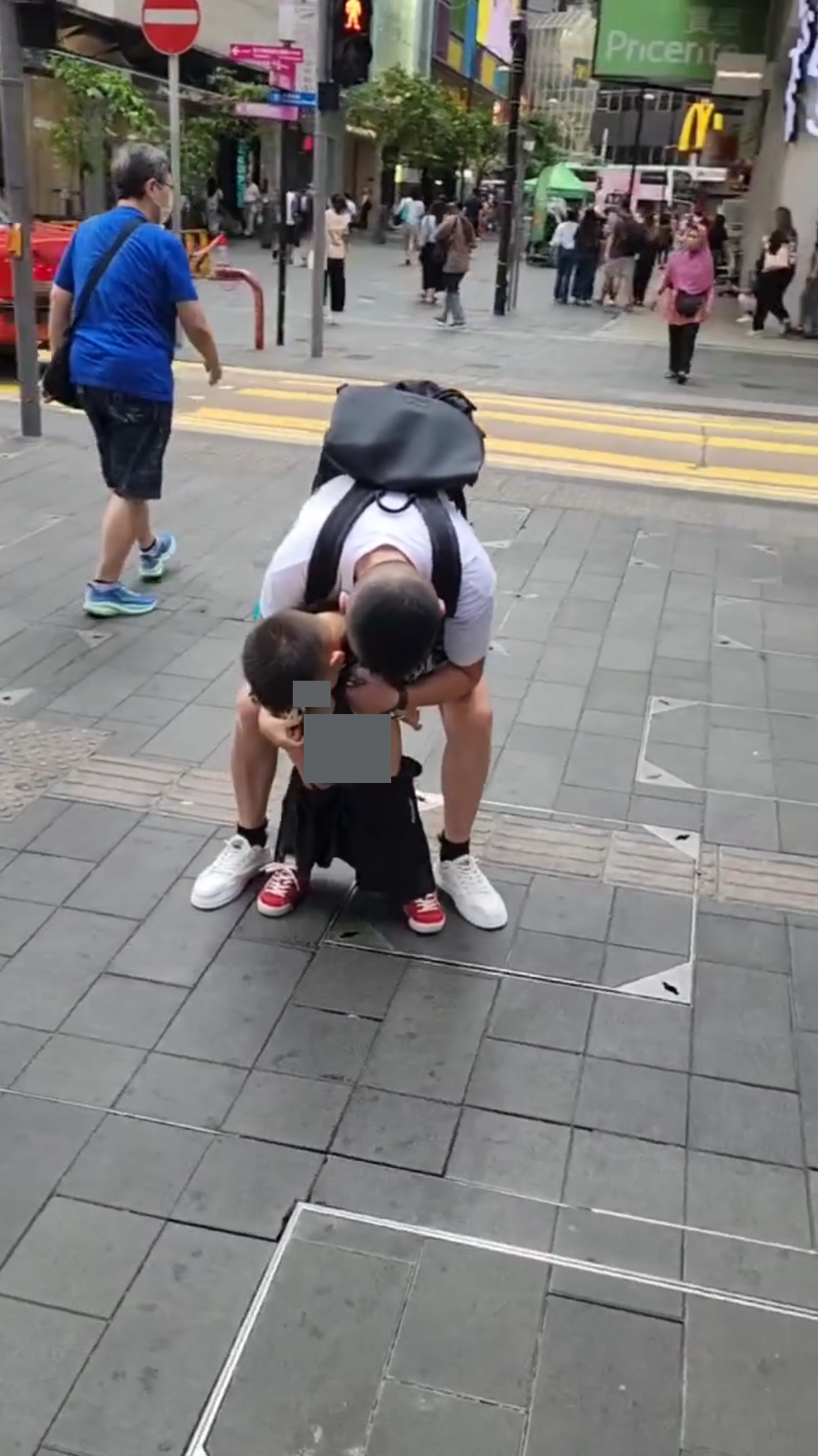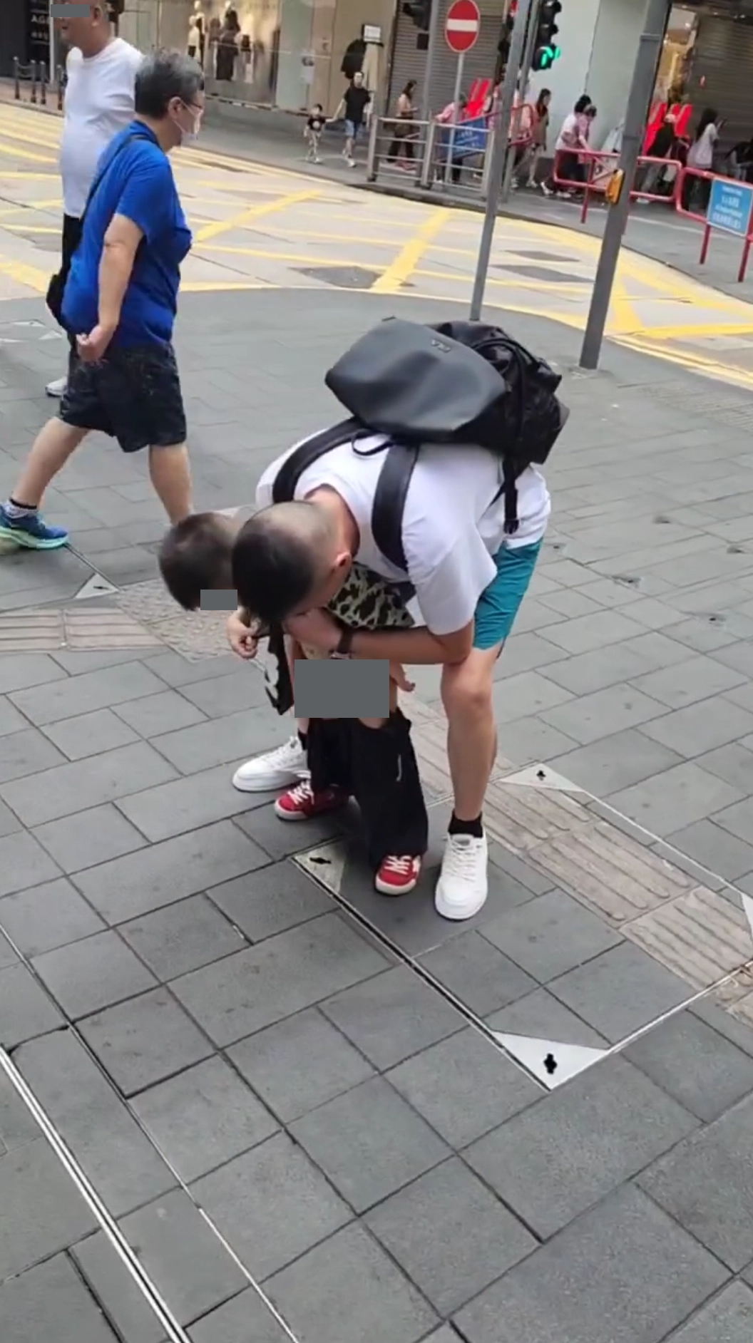 事發地點相信是銅鑼灣一帶,該視頻顯示一名疑似父親,在行人路中心突然脫去一名男童的長褲讓該男童當街小便,完全無視其附近不少途人經過,而且其附近相信有不少商場或商戶可供借用厠所。