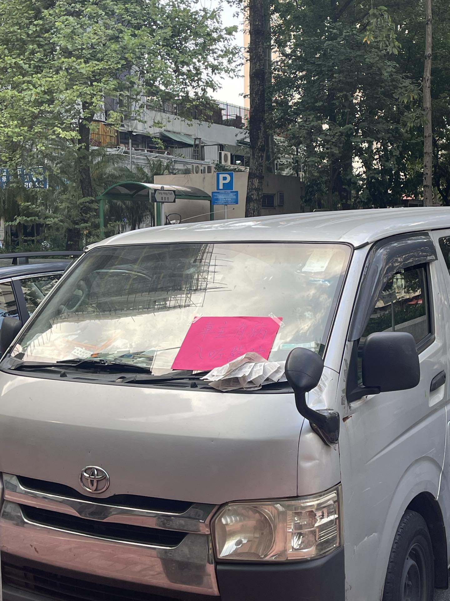 港客貨車泊咪錶貼字「車主有病入咗醫院 」 車頭仍夾滿抄牌罰單網民熱議