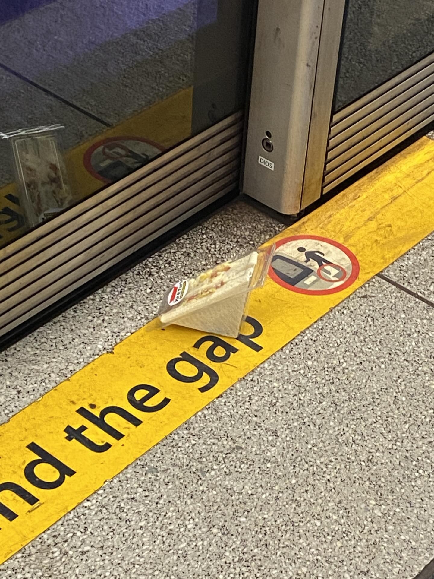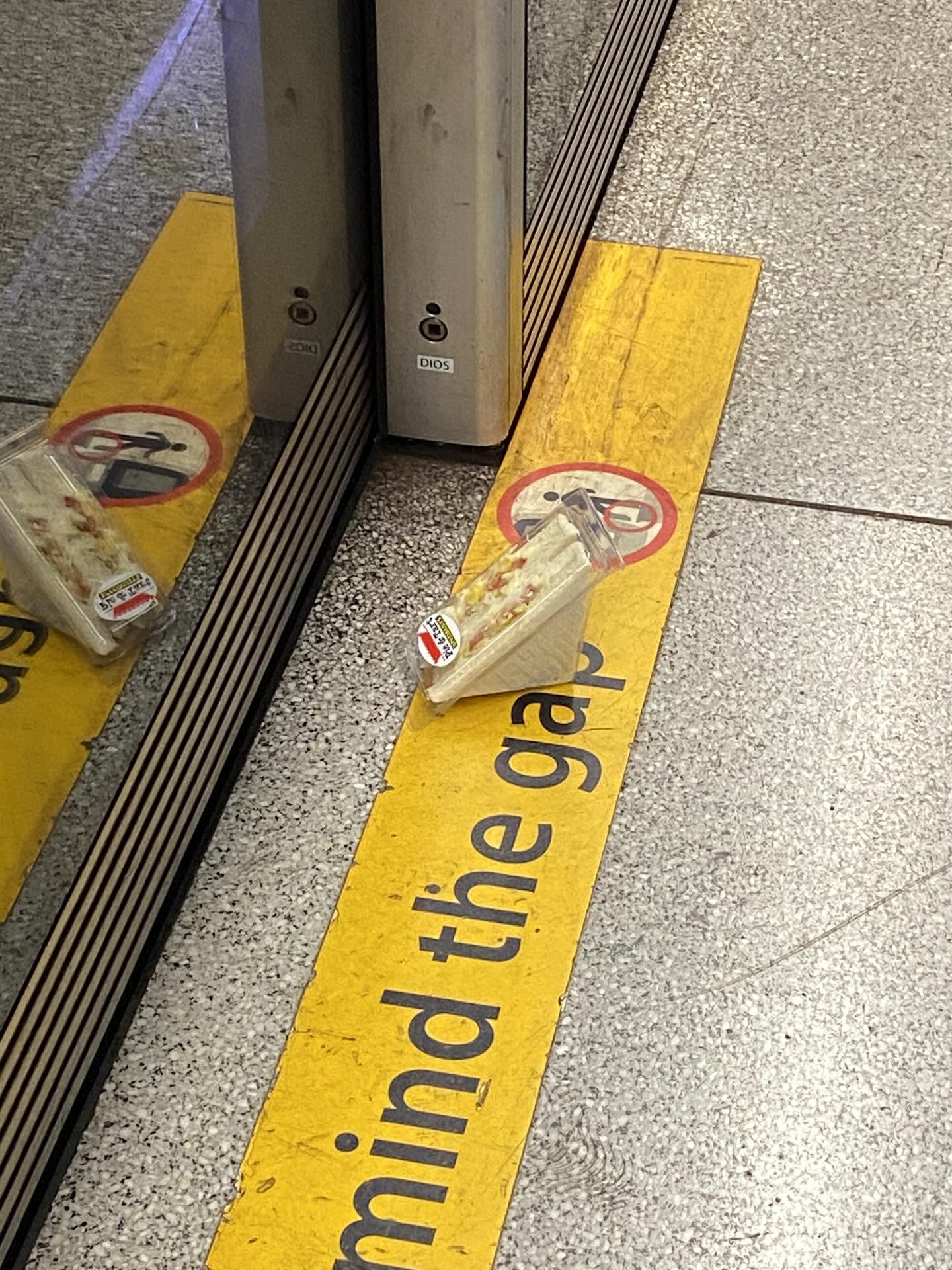 港鐵金鐘站月台出現一份「叛逆的三文治」引起網民熱烈討論。事源一張在平台瘋傳的照片,拍攝地點為金鐘港鐵站中環方向月台,畫面中一件三文治孤獨地「企」在黃線邊緣,甚至「少少過界」,彷彿在挑戰列車安全規則。