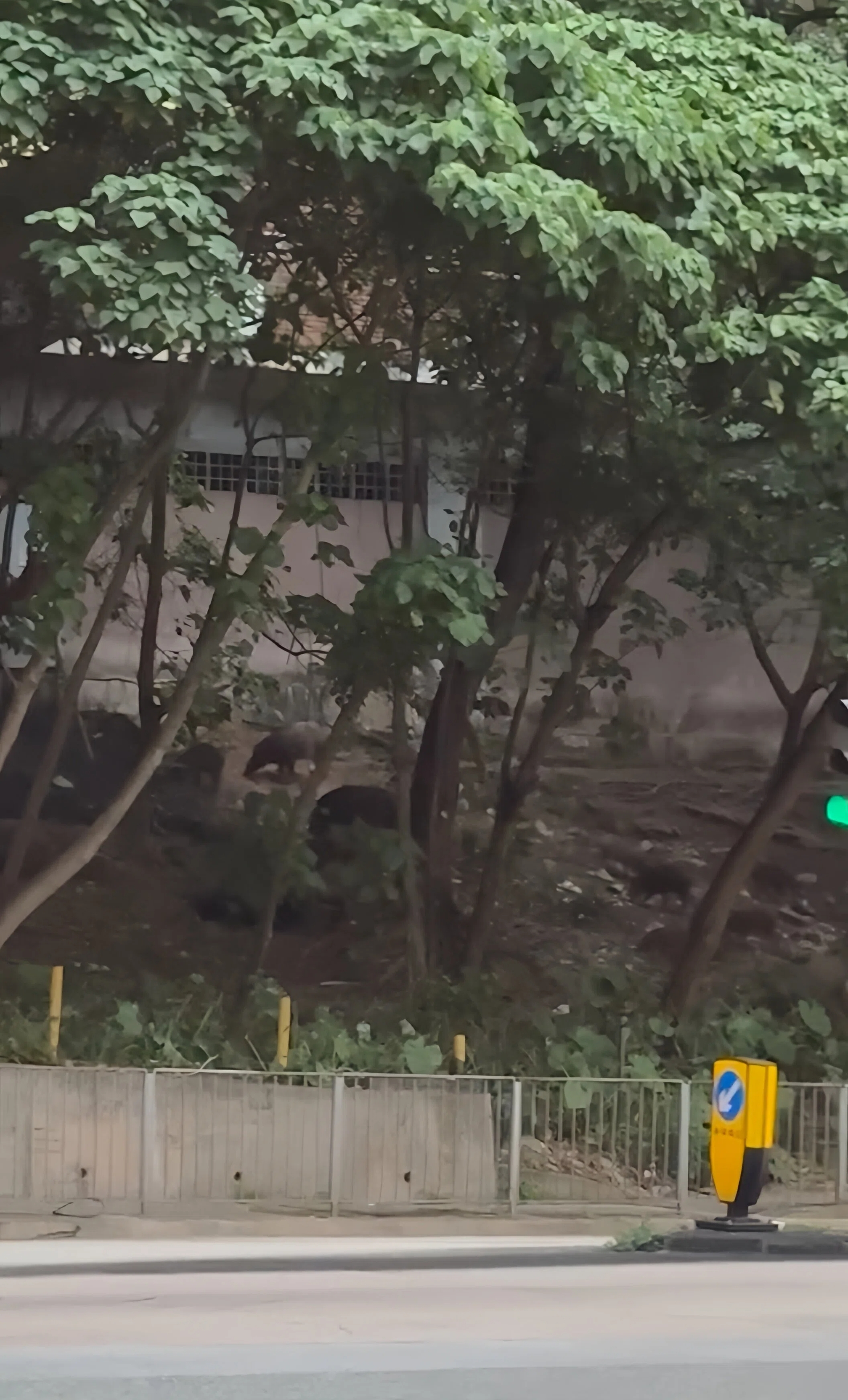 該視頻中可見大群野豬白天現身於香港馬路邊的山坡上,有大有小或接近20隻,場面十分墟冚彷如農場