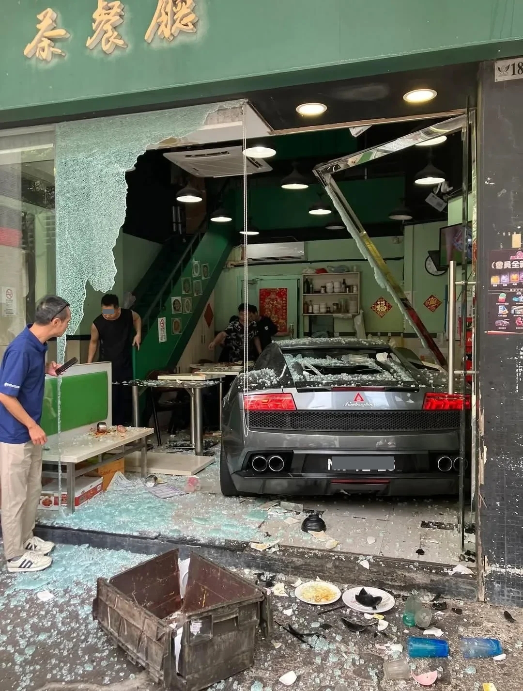 有片 | 澳門林寶堅尼衝入食店釀6傷 六旬司機疑踩錯油門