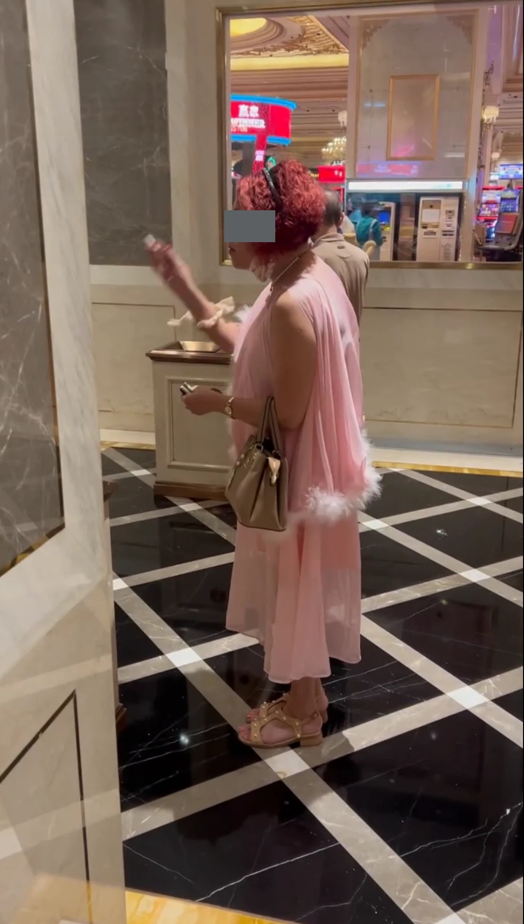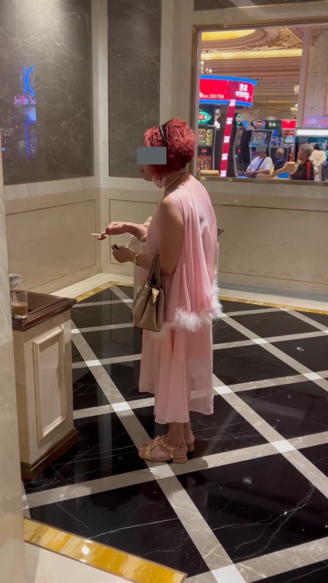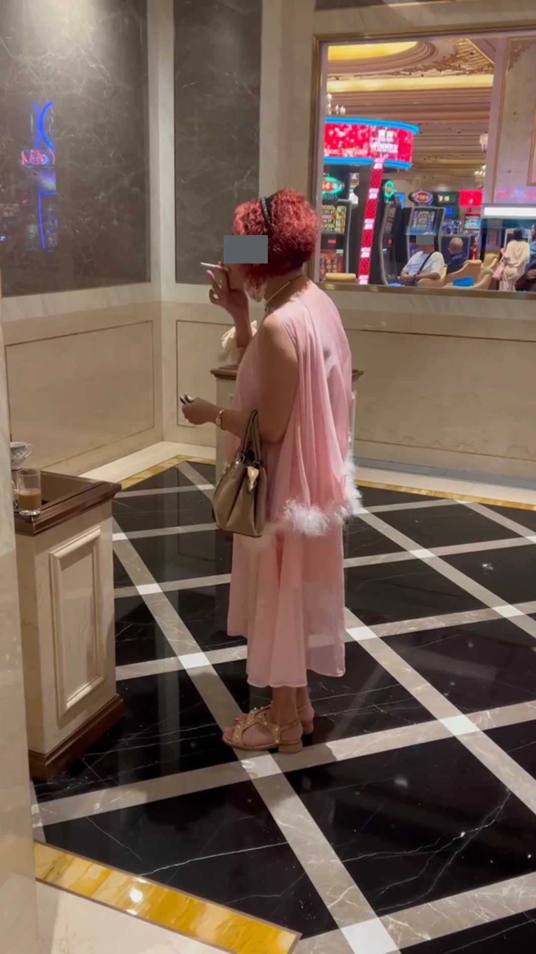 從該手機中可見,一名酒紅色頭髮身穿粉紅色衫及裙的女子,於澳門的一個賭場內不停快速抽吸手上點燃了的香煙,16秒的視頻中已吸了9次,期間她似在不停思索,甚為神秘以及具有儀式感。
