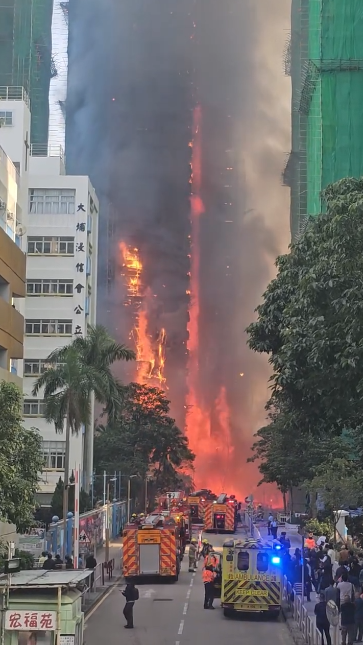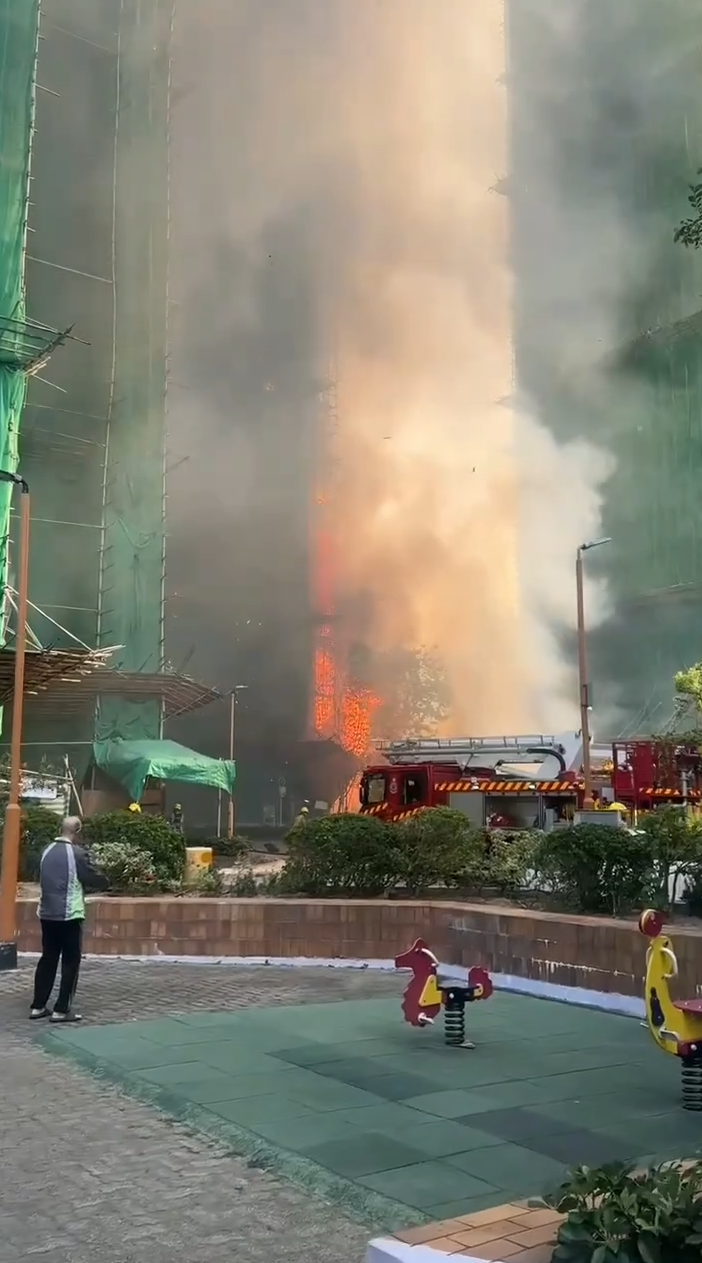 大埔宏福苑有外牆棚架今天 (11月26日) 突然起火,火警升為三級。