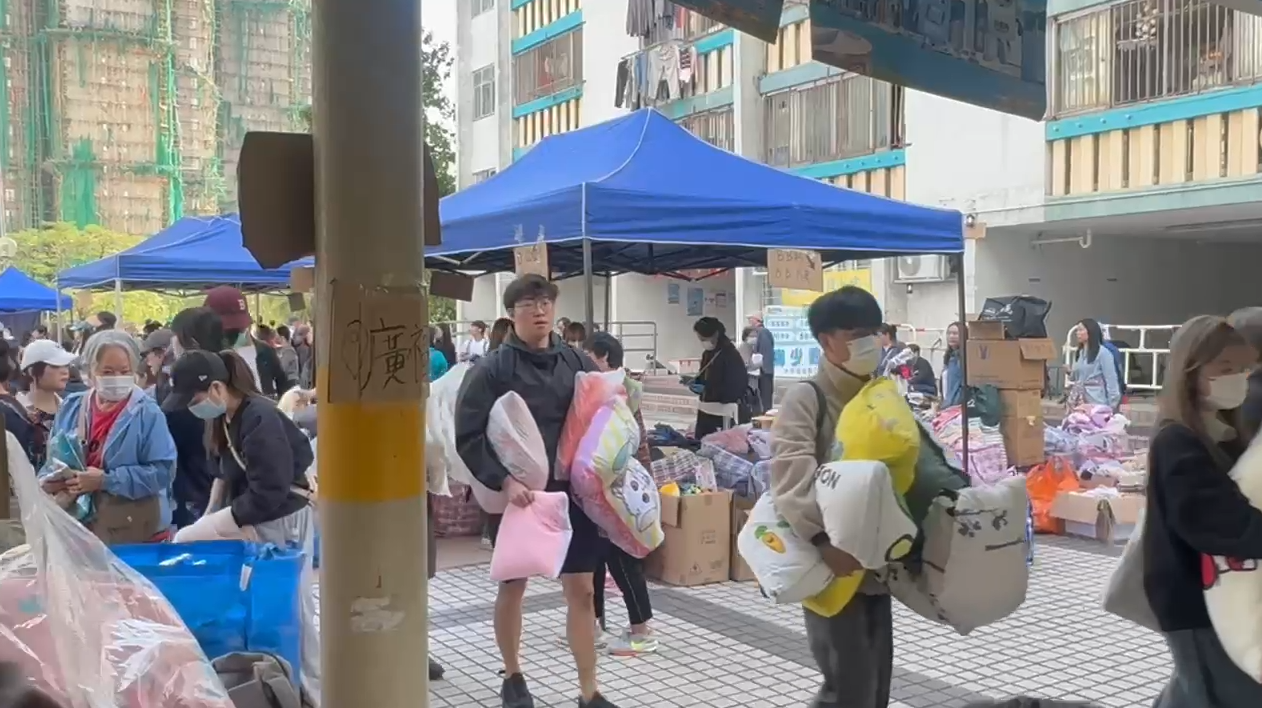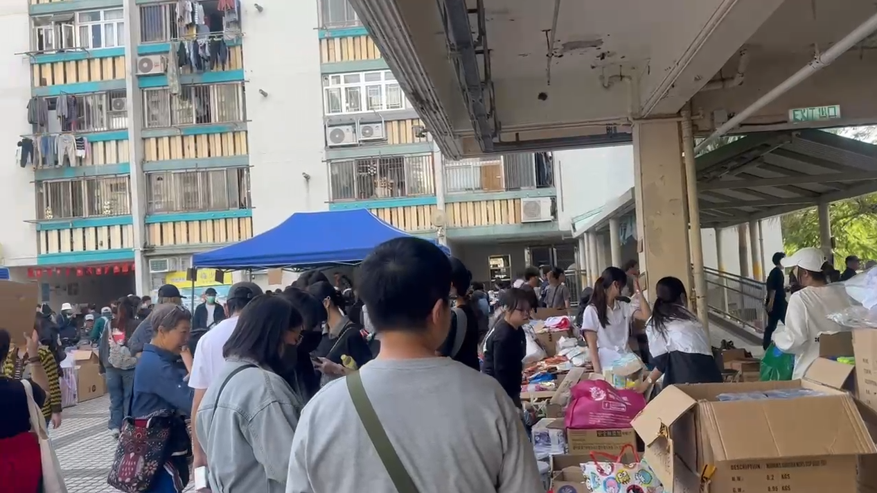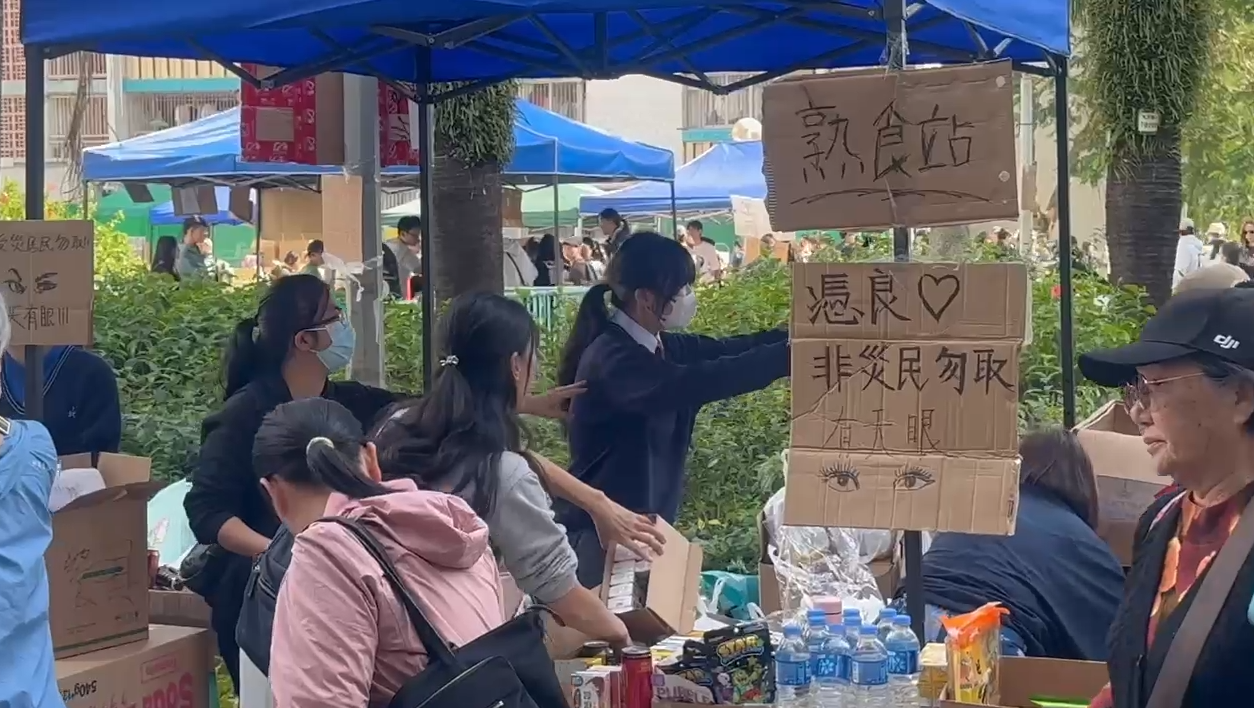 此外,今天大埔廣福邨對開的平台,繼續有大批義工分派物資給受影響災民,而且物資更源源不絕,包括食物、水及日用品等。![]()
