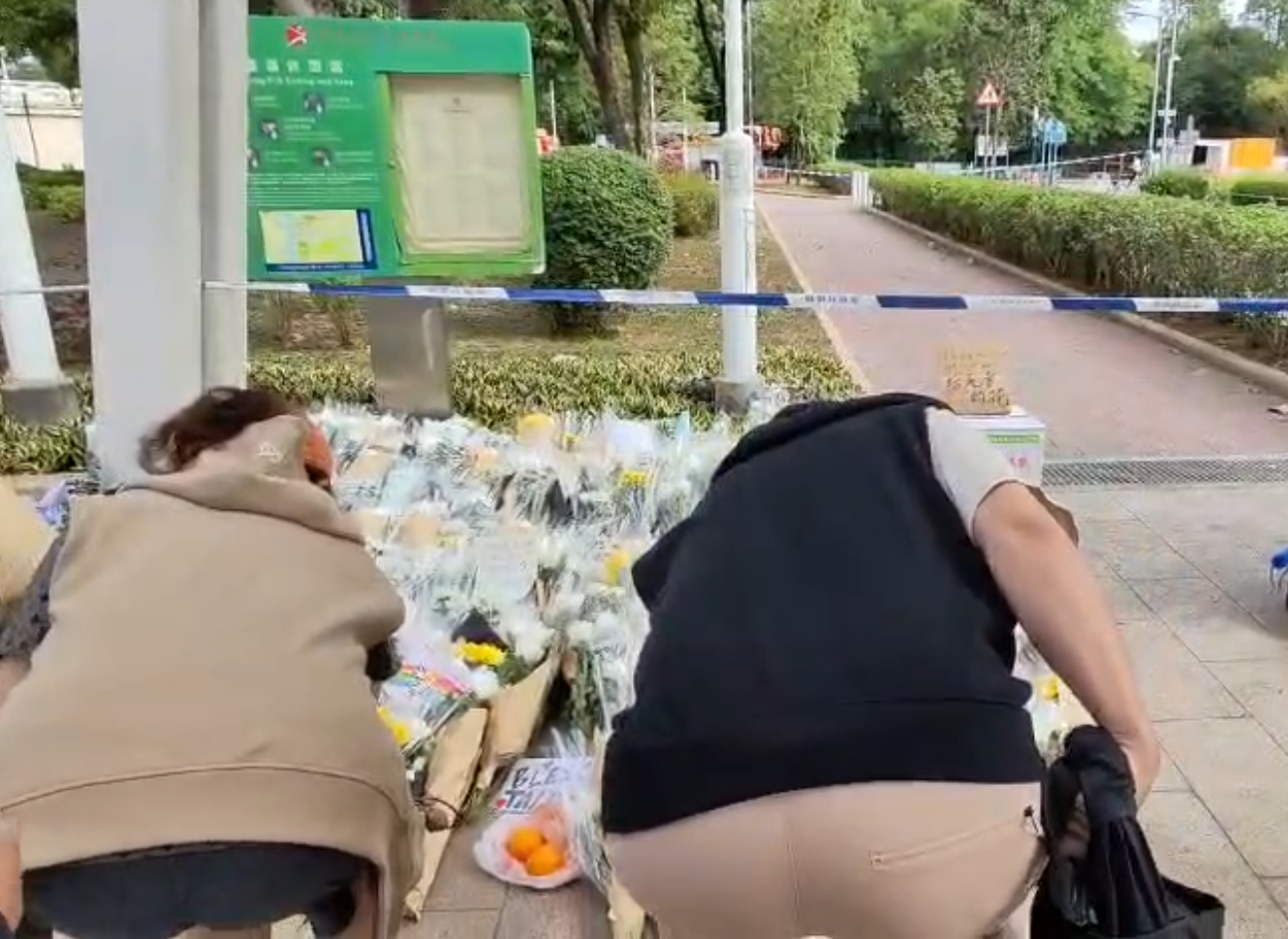 此外,在殉職消防員駐守的沙田消防局外,亦有市民獻花悼念。