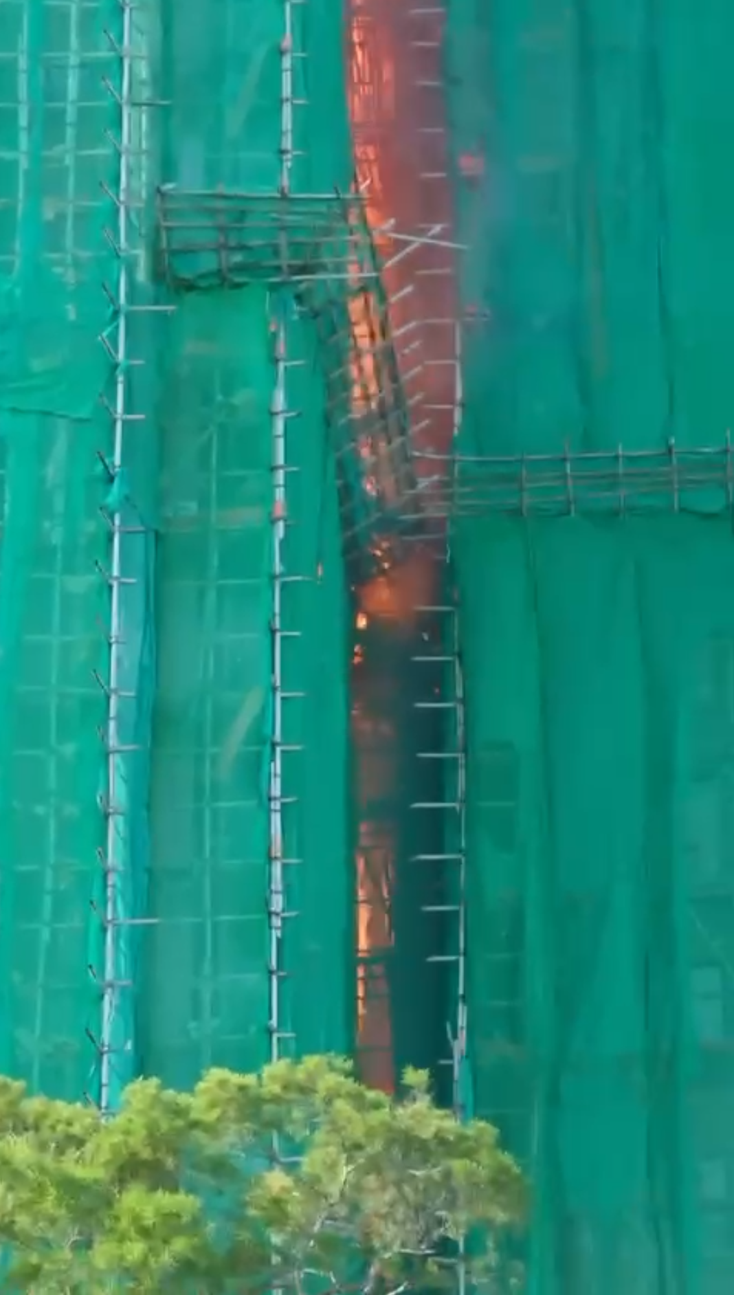 社交平台threads流傳影片,有市民拍得宏福苑宏昌閣一樓棚架率先起火,當時他與朋友在元洲仔傾偈時聽到「嘭嘭聲」,隨即大叫「快啲走呀!火燭呀!」,期間火勢越燒越烈,火勢在短短1分鐘快速蔓延,大量棚竹從高處墮下,樓宇頓成火海。