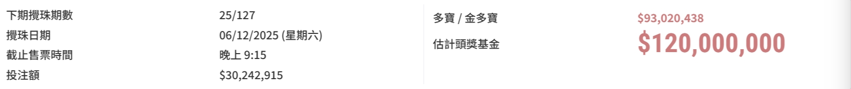 六合彩今期頭獎彩金高達1.2億元  6大旺號睇清楚!