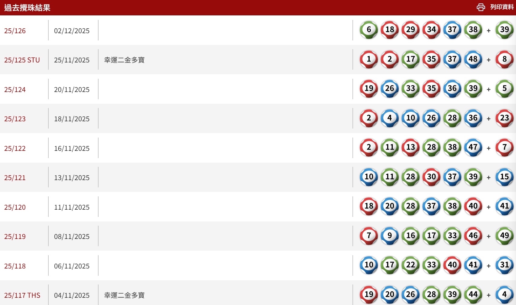 過去10期六合彩攪珠結果