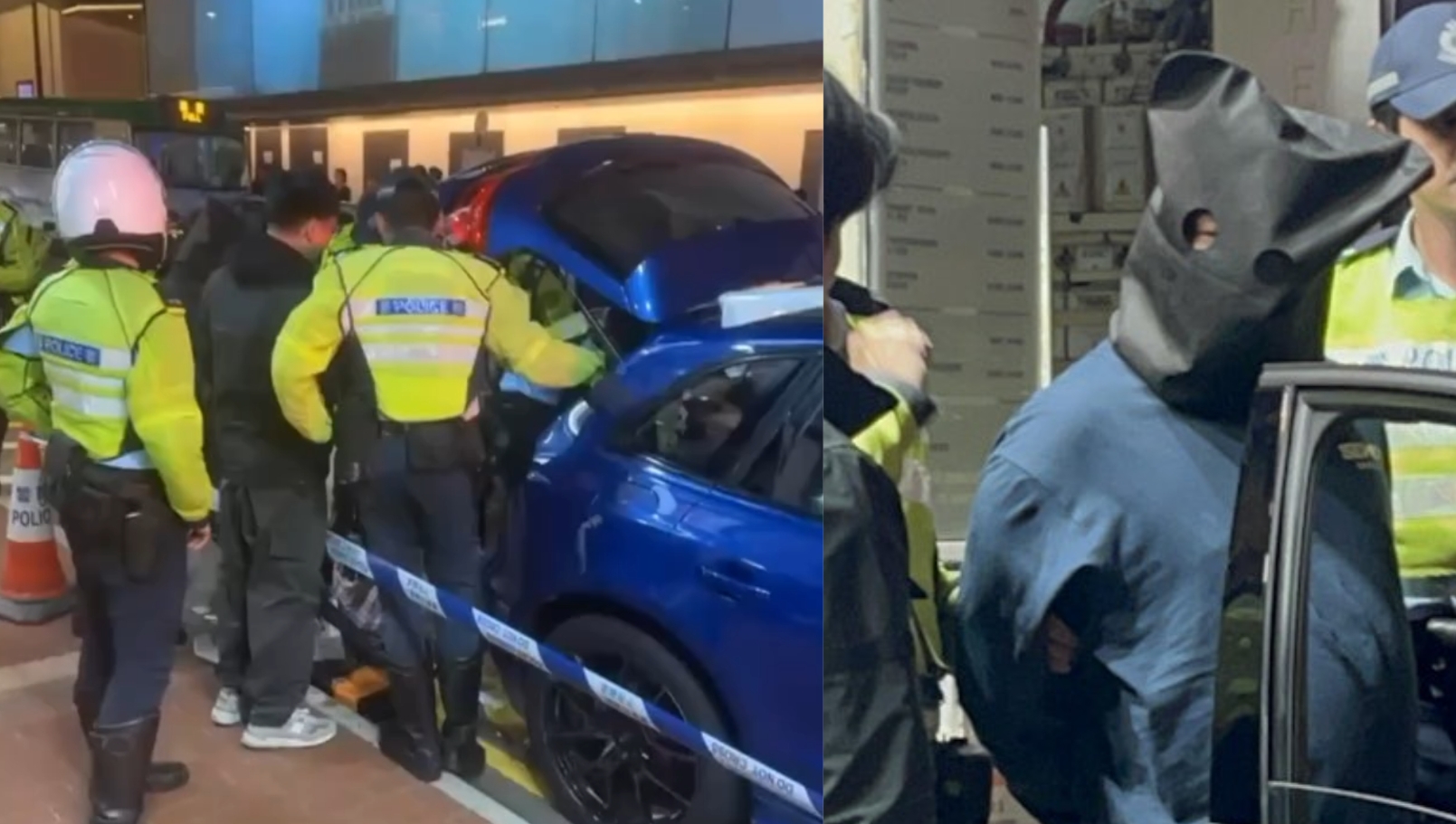 根據網上FB群組流傳的視頻可見,當時警方圍封涉案Audi藍色私家車,疑犯被黑布蒙頭,雙手鎖上手銬,在現場協助搜車尾箱,警犬在場協助蒐證。