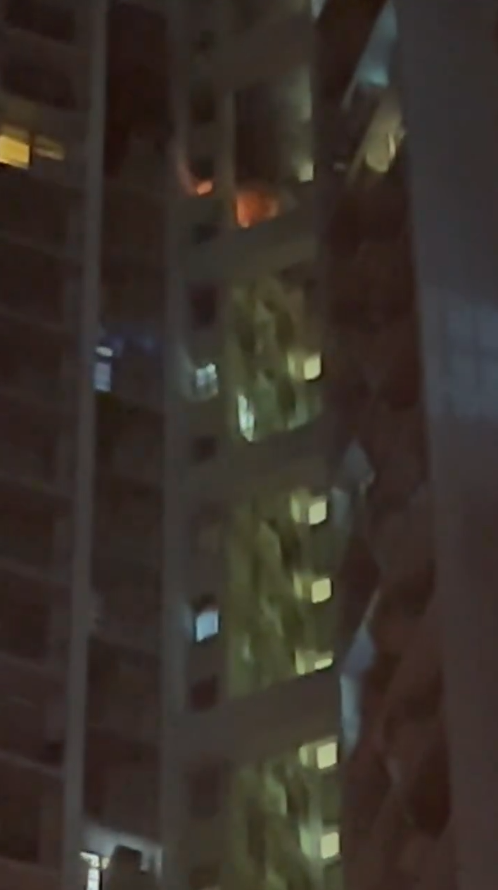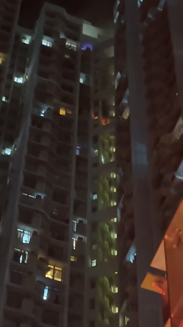 根據網上流傳的視頻可見,該個高層單位陷入火海,火舌伸出單位外,冒出大量濃煙,現場警鐘一直鳴響。