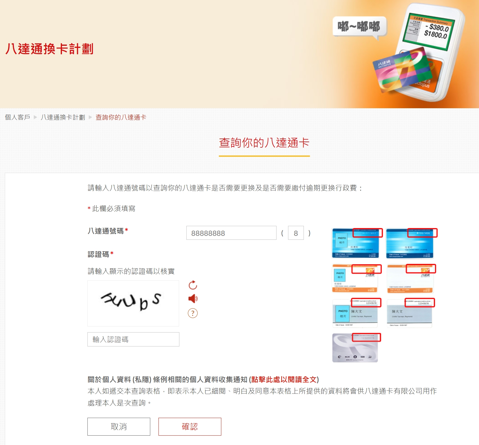 八達通即將到期卡號