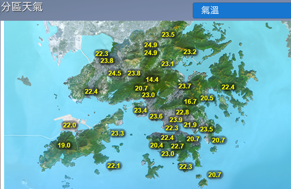 - 天氣:大致多雲,日間短暫時間有陽光,晚上氣溫顯著下降