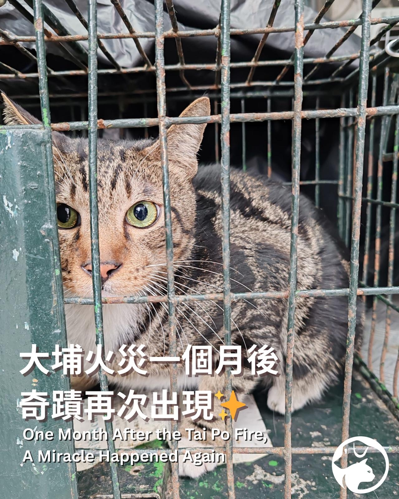 大埔宏福苑火劫,悲劇經歷逾一個月,至今仍然幾十隻動物失蹤,下落不明。不過愛護動物協會一直未放棄尋貓,終於,在火災後一個月再次迎來好消息!他們分別於聖誕節及元旦日,成功捕獲宏福苑兩隻失蹤貓貓,實在太感動人心。