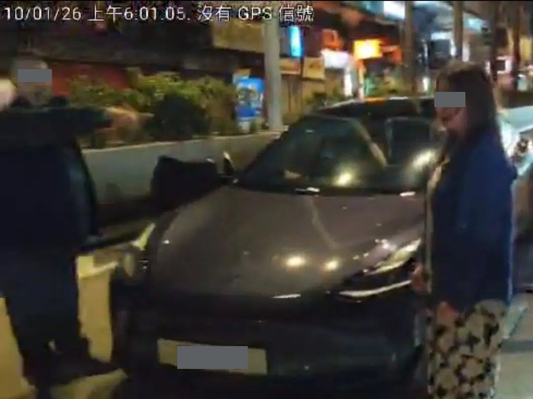 網上FB群組今天 (1月10日) 流傳一則帖子並且附上視頻,帖子表示「警方已即場以涉嫌(刑事毀壞)(藏有攻擊性武器)(普通襲擊)拘捕俄羅斯籍女事主,碰瓷黨先用電話掉向T車,再襲擊男車主,毀壞倒後鏡仲車門企圖搶車走,之後仲要屈斷咗個水撥,最尾我見到女事主從衫袋攞出一把摺刀! 我就即刻上返車保障自己,安全情況下幫車主報警,警察嚟到拎晒盾牌、警棍,制服女事主!」。