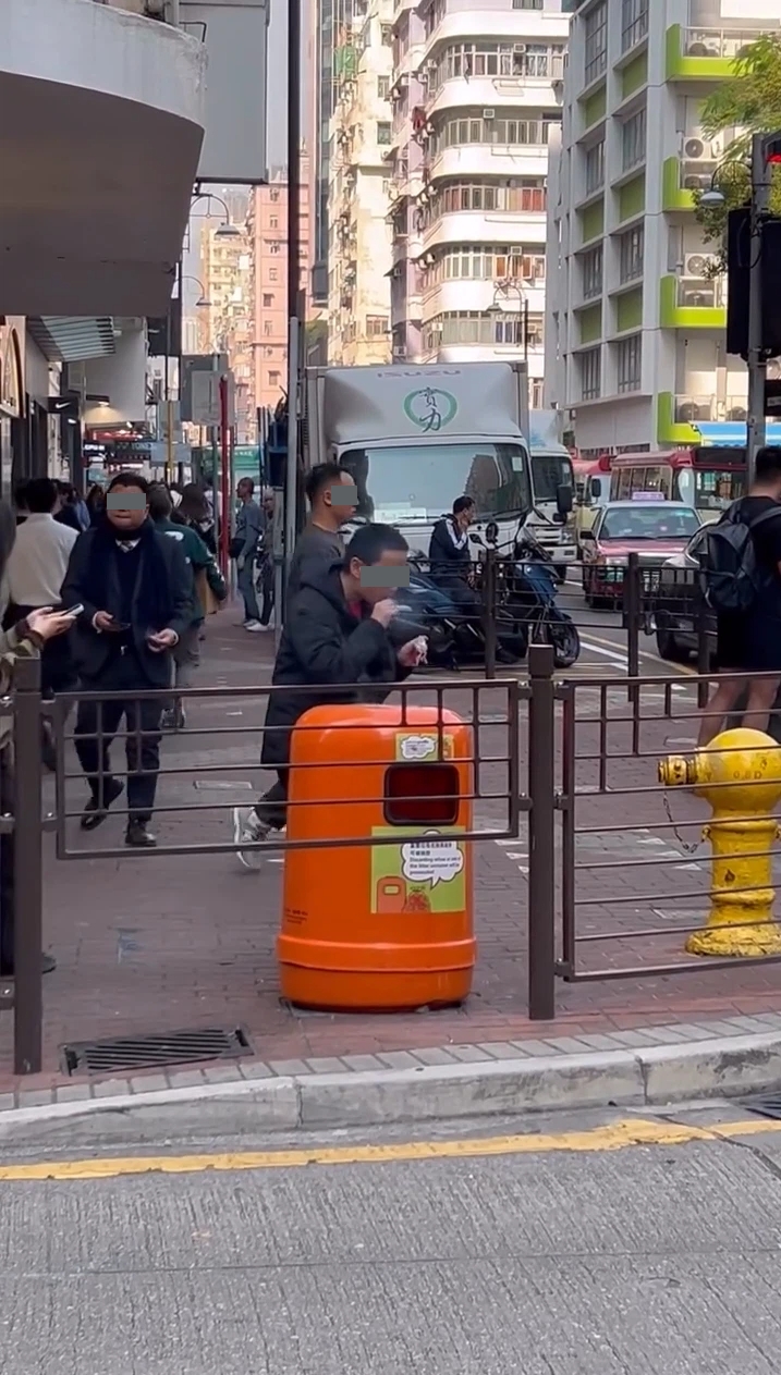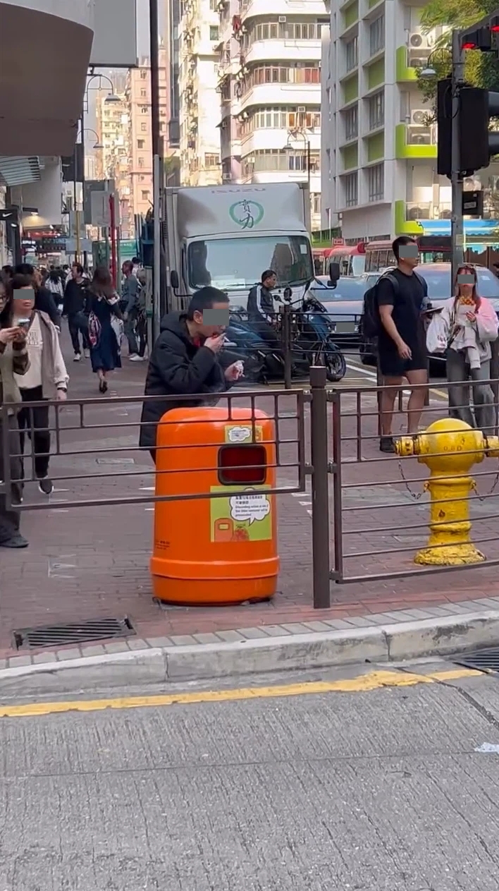 該視頻中可見白天在旺角鬧市街頭,一名外表正常的戴眼鏡中年男子,站在垃圾筒旁邊以「車輪手」狂「隊煙」,帖主表示目擊該名男子10分鐘狂食了2包煙,十分誇張亦不知何解。