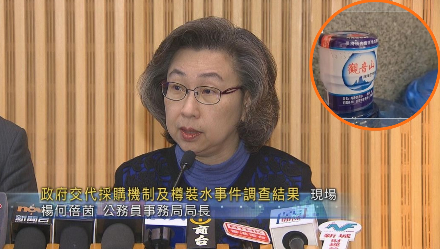 港府購買冒牌樽裝水事件,採購機制檢討工作和紀律調查有結果,財經事務及庫務局局長許正宇及公務員事務局局長楊何蓓茵今天 (1月20日) 交代事件。