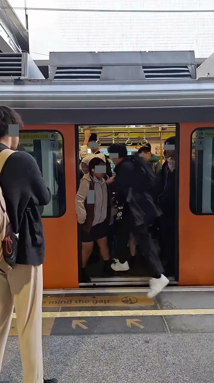 該視頻中可見,一名非華裔女中學生首先以手及身驅阻礙港鐵列車的車門關上,並且大聲叫喚,爭取時間讓一名非華裔男中學生衝入車廂,期間一名本地女中學生曾加入以手作勢檔住車門關上,視頻末段有男旁白表示「好彩無搭呢部 (列車)」。![]()