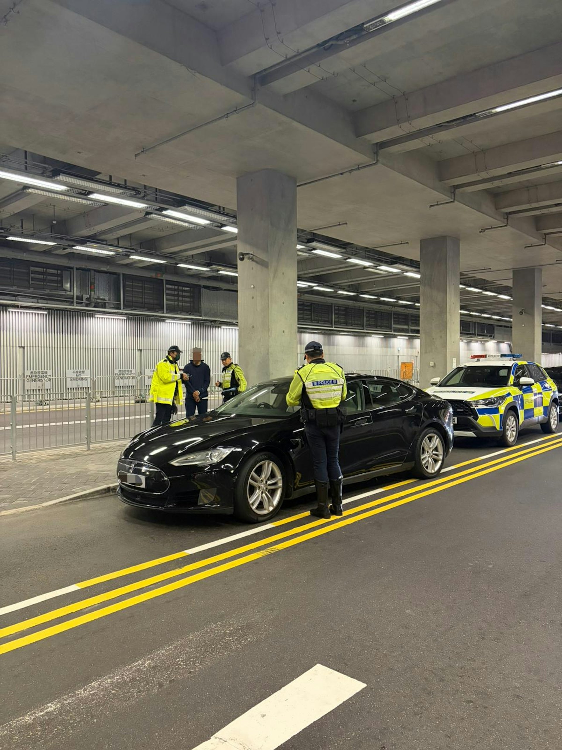 涉案車輛為一輛Audi及一輛Tesla私家車,有關車輛被扣查作檢驗。
