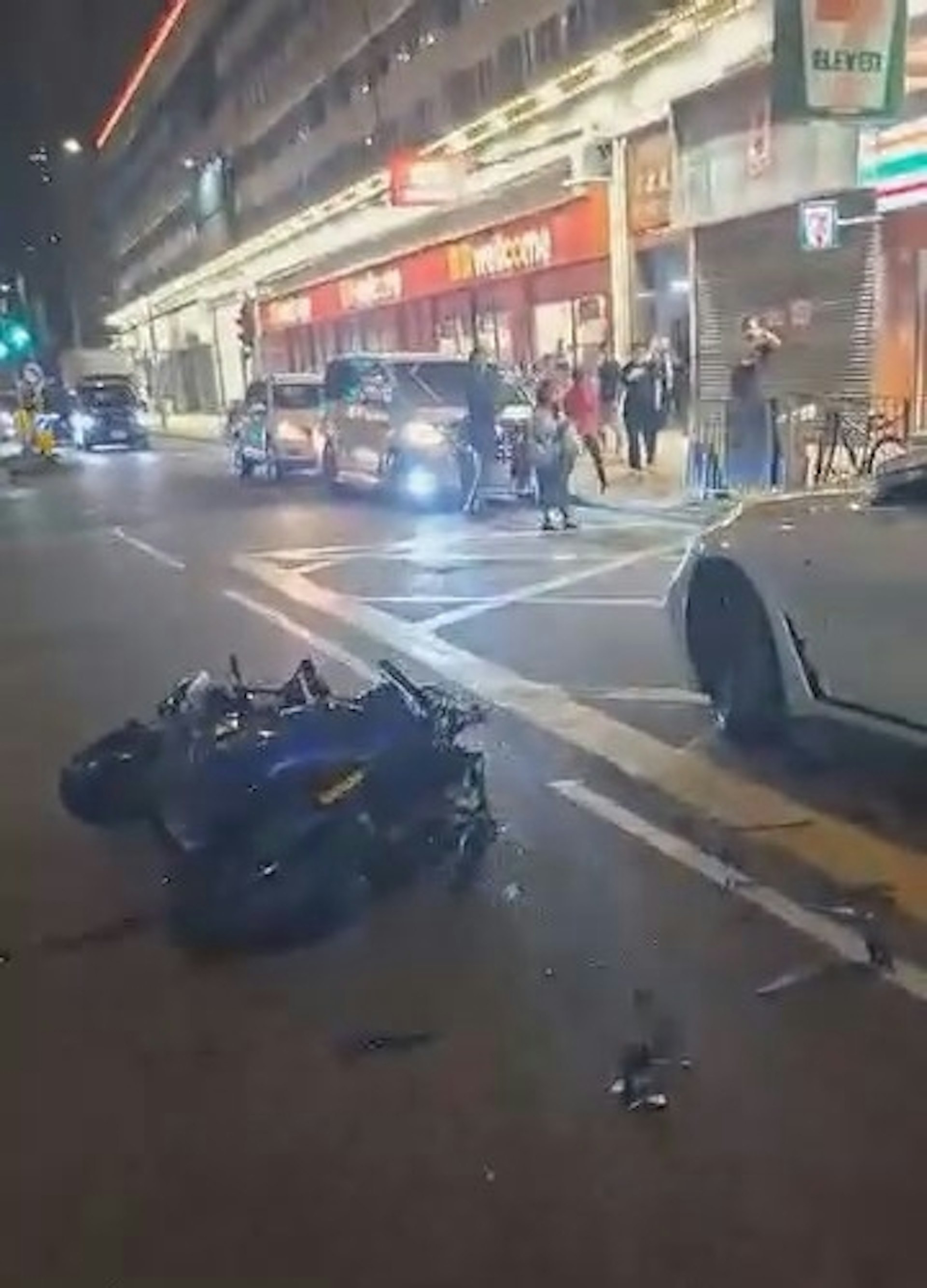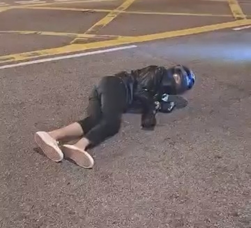 根據網上FB群組流傳的視頻可見,當時鐵騎士倒臥在馬路中心,不停抽搐看似極度痛苦,鐵騎士戴著頭盔的頭部不斷撼向地面,一名身穿白色衫的長髮女子急步上前跪地查看,期間最少兩次大叫「Anyone call the police please(有人可以報警嗎)?」當時多名非華裔人士圍觀,有人回應「Calling(正在報警)」。