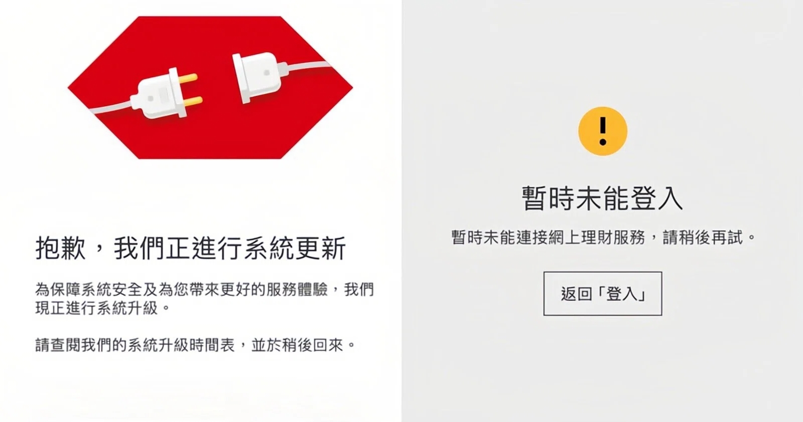 滙豐 銀行手機App 「HSBC HK」今天(1月30日)下午曾出現「死機」情況,部分用戶暫時無法登入,手機App頁面顯示「對不起,暫時無法提供此服務,請稍候再試」,及後頁面則顯示「我們正進行系統更新」。
